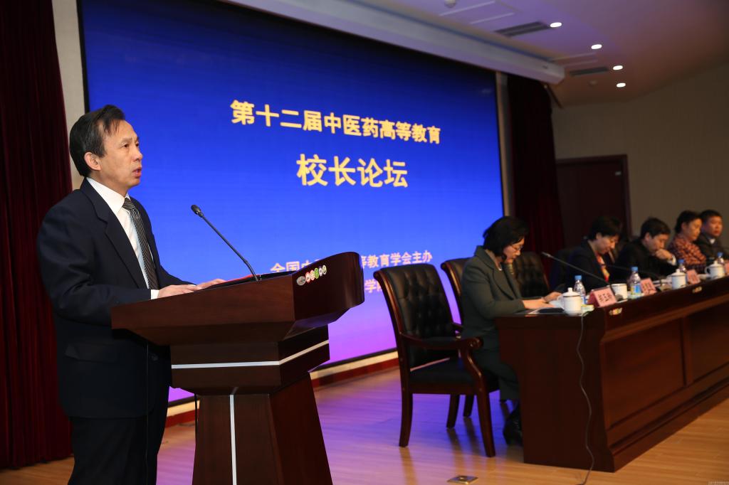 会上,国家中医药管理局副局长王志勇发表重要讲话。他总结了“十二五”时期中医药事业取得的历史性进展,充分肯定了中医药教育工作取得的显著成绩。他说,经过多年努力,我们已经建成了比较完善的中医药教育体系,基本实现了院校教育、毕业后教育、继续教育有机衔接,师承教育贯穿始终的终身教育培养机制,中医药人才的知识结构和层次结构逐渐适应中医药事业发展的需要,整体素质不断提高。王志勇副局长指出,在看到成绩的同时,我们也要清醒地看到中医药教育工作还存在一些困难和问题:比如中医药教育与中医药事业发展的紧密结合还有待加强,中医药人才素质和结构还不能完全适应中医药事业发展的需要,中医药类专业学生中医思维不稳固、实践技能不扎实、创新和可持续发展能力不足等问题,需要引起我们的高度重视,并且在今后的工作中进一步加以改革和推进。他还分析了当下中医药发展面临的前所未有的良好机遇:一是当前中医药事业发展的条件和环境已经发生了深刻的变化,正处于我国近代以来最好的历史时期;二是中央各个部委和地方各级党委政府对中医药的关注力度、支持力度和投入力度前所未有;三是广大人民群众越来越信任和选择中医药,中医药发展的基础不断夯实;四是现代医学模式的转变和中医药更广泛的走向世界,给中医药事业的发展开辟了更加广阔的舞台。最后,王志勇副局长阐述了“十三五”时期中医药发展的重点任务,明确了中医药改革与发展的新方向和新举措。他希望各个院校以编制“十三五”发展规划为契机,系统总结办学经验,认真梳理存在问题,不断深化教育教学改革。一要进一步明确办学定位,突出以中医药为主体的办学方向,优化中医药专业结构,强化中医药学科建设,协调好教学与研究的关系;二要进一步转变办学思路,更加注重适应中医药事业、产业发展和地方经济社会发展需求,更加注重学生胜任力培养更加注重发挥高等院校人才培养、科学研究、服务社会、文化传承的功能,抓住关键领域和突出问题,推进中医药院校教育综合改革。