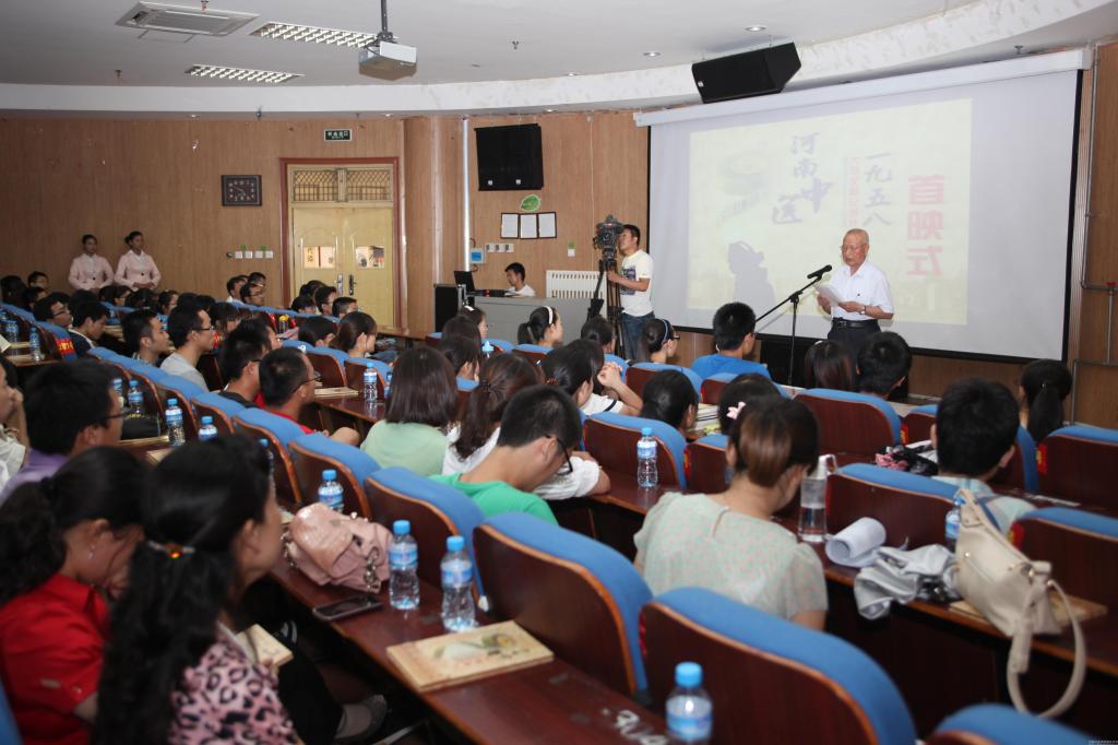 随后,电视文献片《河南中医1958》震撼播放。在时长90分钟的播放过程中,观众们聚精会神,伴随着剧情的发展,时而落泪,时而开颜。在看到建院初期,师生们冒着大雨拉砖建房的情形,老师和同学们潸然泪下。在看到大家在干完活后吃面条的情景,又露出了开心的笑容……
