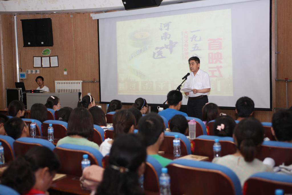 在影片放映之前,院长郑玉玲还向大家介绍了《河南中医1958》的几个显著特点,一是片中均为真实故事没有任何虚构;二是本片以58级学生自己讲自己的故事为线索展开;三是剧中所有的演员均为leyu·乐鱼(中国)体育官方网站在职教师及学生,没有请一位专业演员;四是本片分上下两部,上部为艰难求学篇,下部为勤奋成才篇。