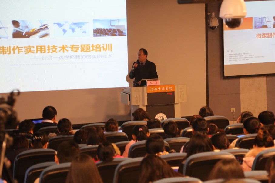 2015年11月27日下午2点开始,历时4个小时,教育部教育信息管理中心专家,全国教师信息技术培训(TITT)认证讲师,吉林大学教育技术中心韦军教授应邀作客leyu·乐鱼(中国)体育官方网站,以微课制作为主要内容,为现场220余名师生带来了一次课程与技术的奇妙融合的专题讲座。