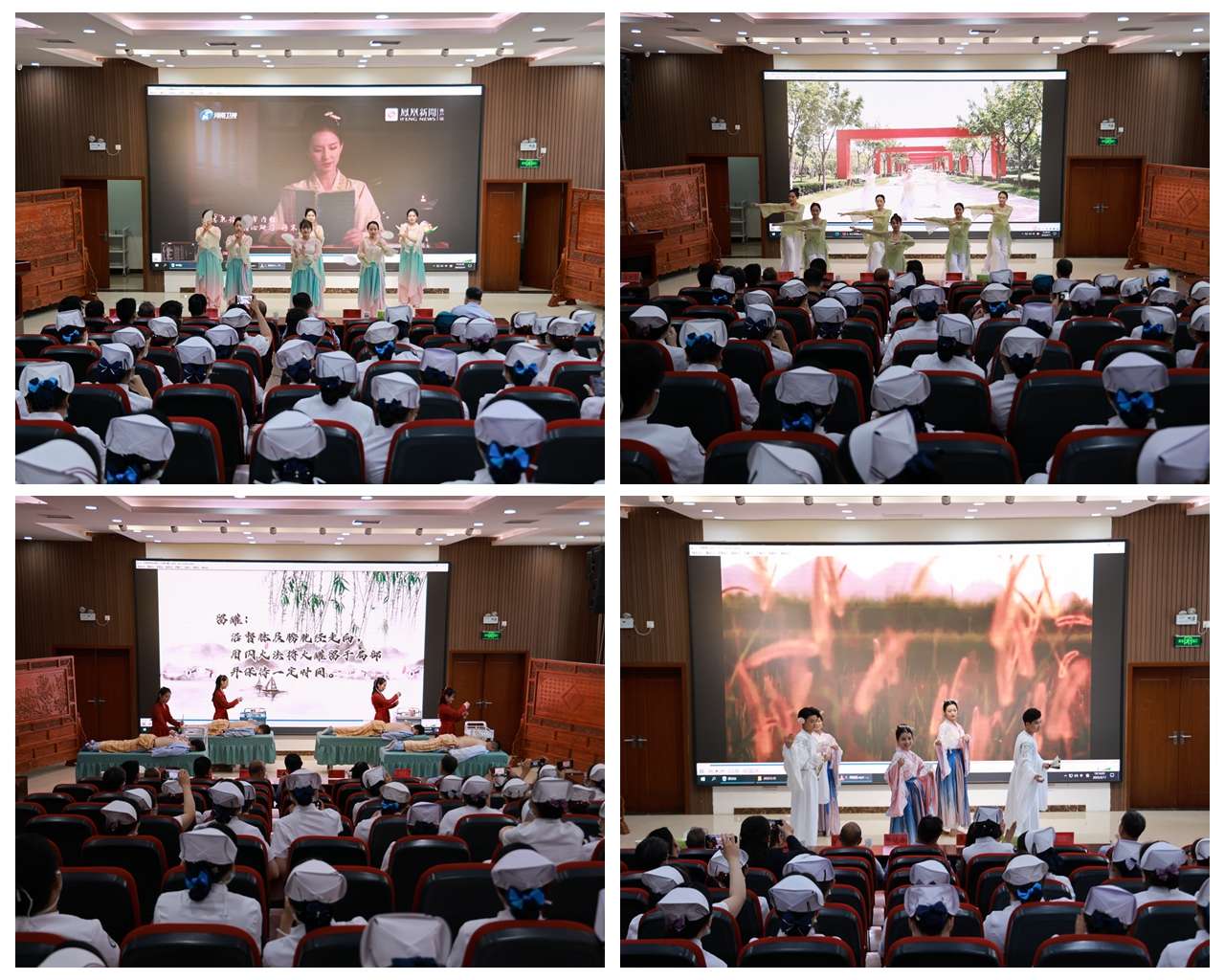 表彰会上,各临床病区表演了精彩的节目。肛肠科三病区选送的《医圣传人》舞蹈拉开会议帷幕。妇产科中医养生康复操《舞韵功法》、针灸科一病区、推拿科二病区护士展示的《中医护理技术——平衡火罐》引来现场的一阵阵掌声。心血管科一病区带来了古典柔美的舞蹈《闲庭絮》。随后,以曹红霞护士长为代表的四代护理人讲述、分享了自身的工作感悟和收获,引起在场护理人员的共鸣与感动。