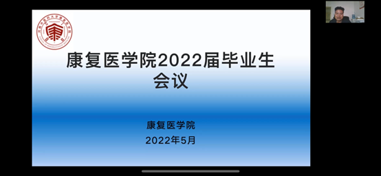 本网讯(文/张瑞雪 刘梦超 图/周珊珊)行而不辍,未来可期。面对严峻复杂的新冠肺炎疫情形势,2022届毕业生迎来了不平常的毕业季。康复医学院按照学校工作安排,切实加强毕业生离校管理和教育,于2022年5月27日下午以线上形式召开2022届毕业生会议。康复医学院党委书记张运克,院长冯晓东,院党委副书记孟长海,副院长许国防、刘斌,学院全体辅导员、毕业班班主任及2022届本科、研究生毕业生参加会议。会议由孟长海主持。