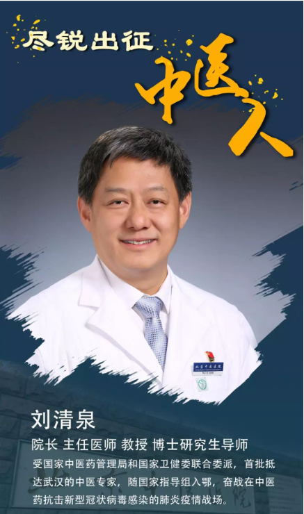 为重症危重症患者进行专家会诊、到方舱医院去查房、对患者的病情进行评估,来武汉已有月余,清泉院长几乎一天都没有停下过。他说,他还没有考虑过回北京的事,眼下最关注两件事,一件是方舱医院轻症管理,另一件是重症救治降低致死率,这两件大事是他现阶段要挑战的重任。“疫情不退,我也不能退。”当国家、国民处于危难之时,刘清泉以国家和人民利益为重,舍小家、顾大家,坚守奋战在抗击疫情最前线,恪尽职守,无私奉献;面对危险,面对生死,从容不迫,用实际行动书写了中医人的“大医精诚”精神。