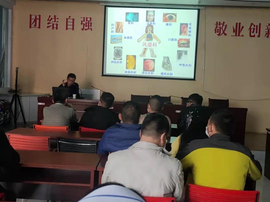 巴里坤哈萨克自治县地处天山脚下,气候寒冷,大家以辛辣、肉食为主,易出现风湿关节病,再加上新疆地缘辽阔,优质医疗资源相对匮乏,好多人对风湿病认识不足,要是患了风湿病更是不知道去哪里就诊和如何应对。鉴于此,周子朋抽出不坐诊的时间,用中西医两种思维方法来讲解什么是风湿病,讲座由网红小说《第一次的亲密接触》中患有系统性红斑狼疮的主人公轻舞飞扬和痞子蔡的经典浪漫爱情故事展开,中医从《黄帝内经》《金匮要略》开始,西医从《希波克拉底全书》开始,介绍了风湿病的整个发展历程、如何诊断、如何治疗及未来发展前景,让大家对风湿病有了一个全面的系统的认识。