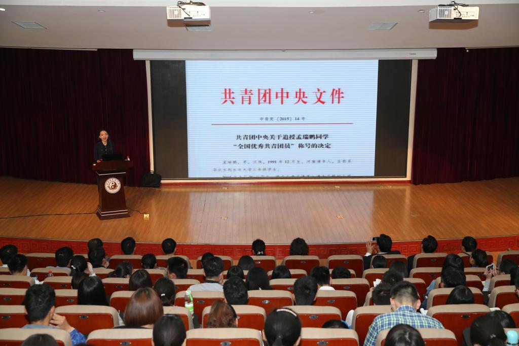 吴菲菲讲述见义勇为、因救两名落水儿童不幸遇难的华北水利水电大学学生孟瑞鹏的故事