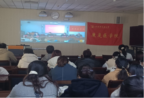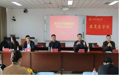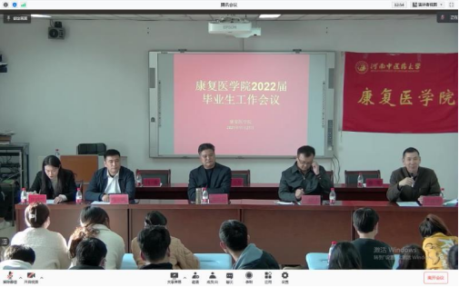 本网讯(文/张瑞雪 图/夏悦芹)为进一步学习贯彻党的十九届六中全会精神,做好疫情防控工作,进一步为学生办实事、解难题,切实做好学生考研、就业辅导等实际工作,康复医学院党委于2021年11月27日下午召开2022届毕业生工作会议。康复医学院党委书记张运克,院长冯晓东,副院长许国防、刘斌出席会议。学工办、教学办等相关部门负责人员,学院老师及2018级康治班全体同学参加会议。本次会议采用线上线下结合的方式举行,线下分为两个会议室,线上采用腾讯会议平台,会议由毕业班辅导员张瑞雪老师主持。