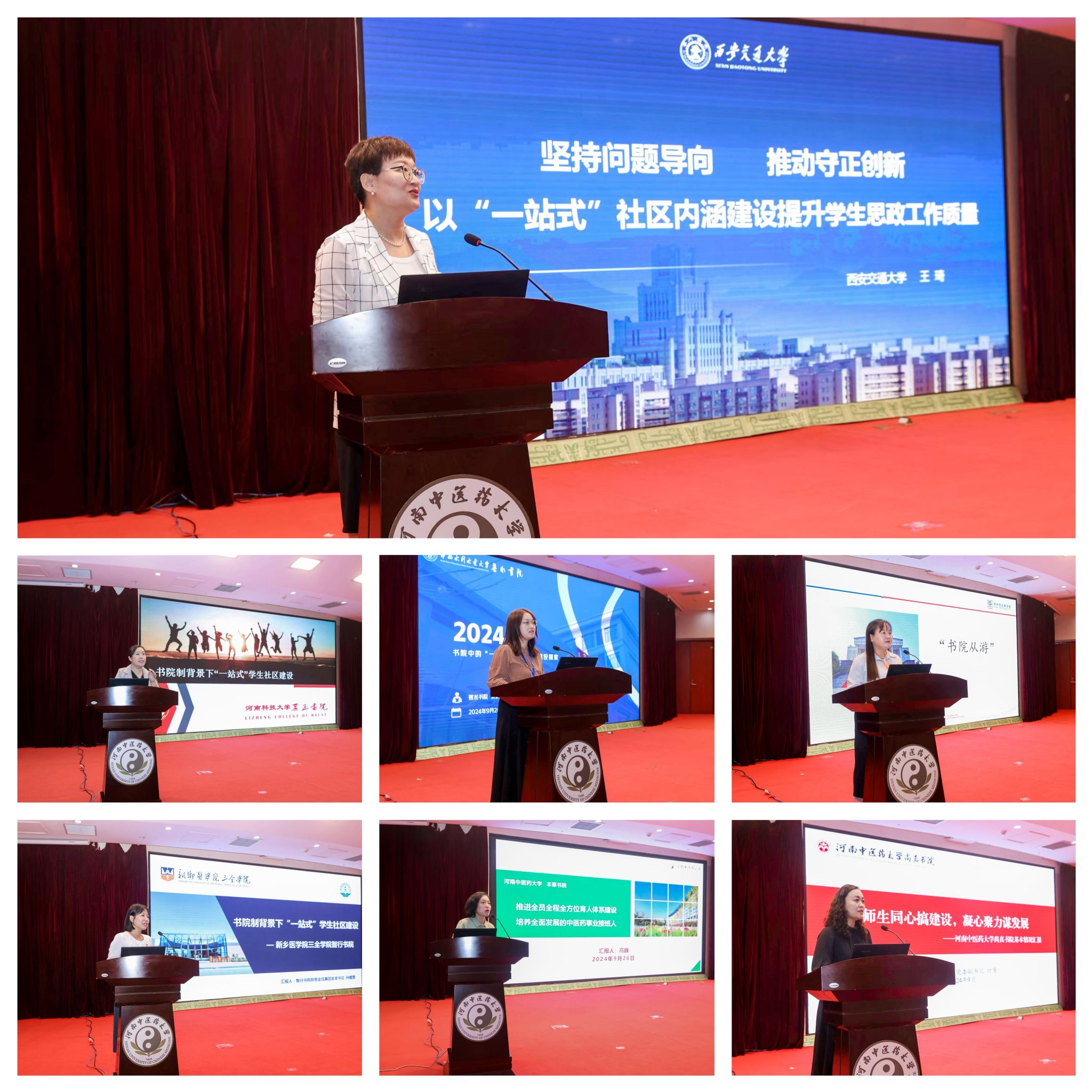 高校书院联盟轮值主席单位、西安交通大学学生处副处长、文治书院党总支书记、院务主任王琦作主旨报告,她介绍了全国高校书院制改革的现状,充分肯定了河南省在书院制育人模式改革方面取得的成绩,并为2024年加入全国高校书院联盟的省内7家书院授牌。