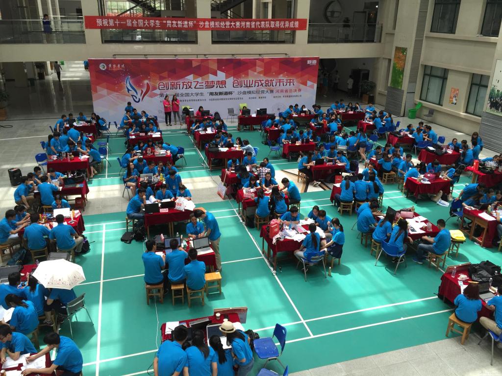 本次决赛有郑州大学、河南大学、河南财经政法大学、河南理工大学等46所高等院校的80支队伍参赛,云集了400余名参赛选手和150多名带队老师,是河南省迄今为止规模最大的沙盘模拟经营大赛。该比赛是集知识性、趣味性、互动性于一体的大型企业管理技能竞赛,参赛的每个团队由5人组成,分别代表CEO(首席执行官)、CFO(首席财务官)、营销总监、生产总监及采购总监。每个团队经营一家虚拟公司,通过直观的企业经营沙盘,模拟企业实际运行状况。参赛人员置身商场实战场景,在激烈对抗中体验企业经营的艰难过程,深入理解ERP(Enterprise Resource Planning)理念对于企业管理的重要性,从而提升创新、决策、团队合作意识,提高理论与实践相结合的能力。