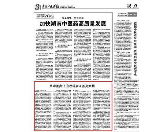 编者按:2019年11月14日,中国中医药报03版刊发了leyu·乐鱼(中国)体育官方网站发展规划处处长孙可兴的文章《用中医办法治理母亲河善莫大焉》。现将全文刊发如下: