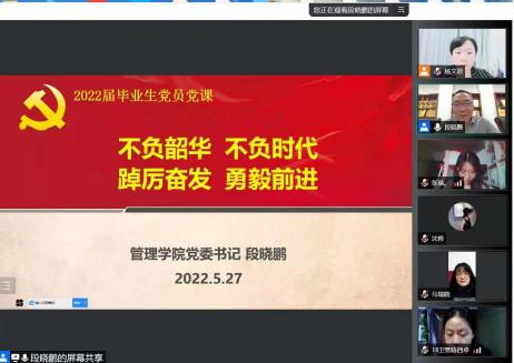 本网讯(文图/樊亚娟)为积极推动双院协同育人机制的融合与实践,进一步在学思践悟中铸牢理想信念,在知行合一中坚定初心使命,2022年5月27日晚,尚真书院组织开展2022届毕业生党员离校前“一堂党课”活动。本次党课特邀管理学院党委书记段晓鹏主讲,会议由尚真书院2018级辅导员杨文君老师主持,尚真书院2018级学生第一党支部和第二党支部全体学生党员参加会议。
