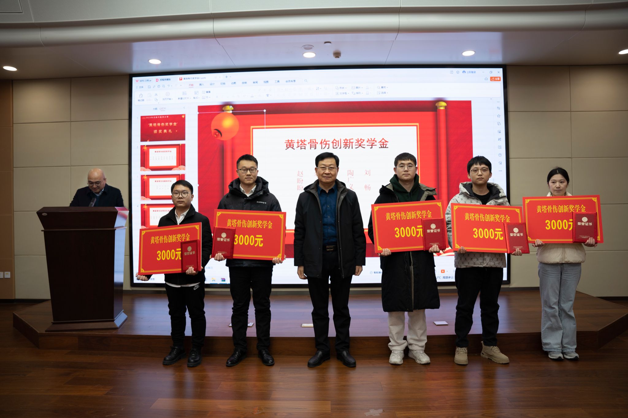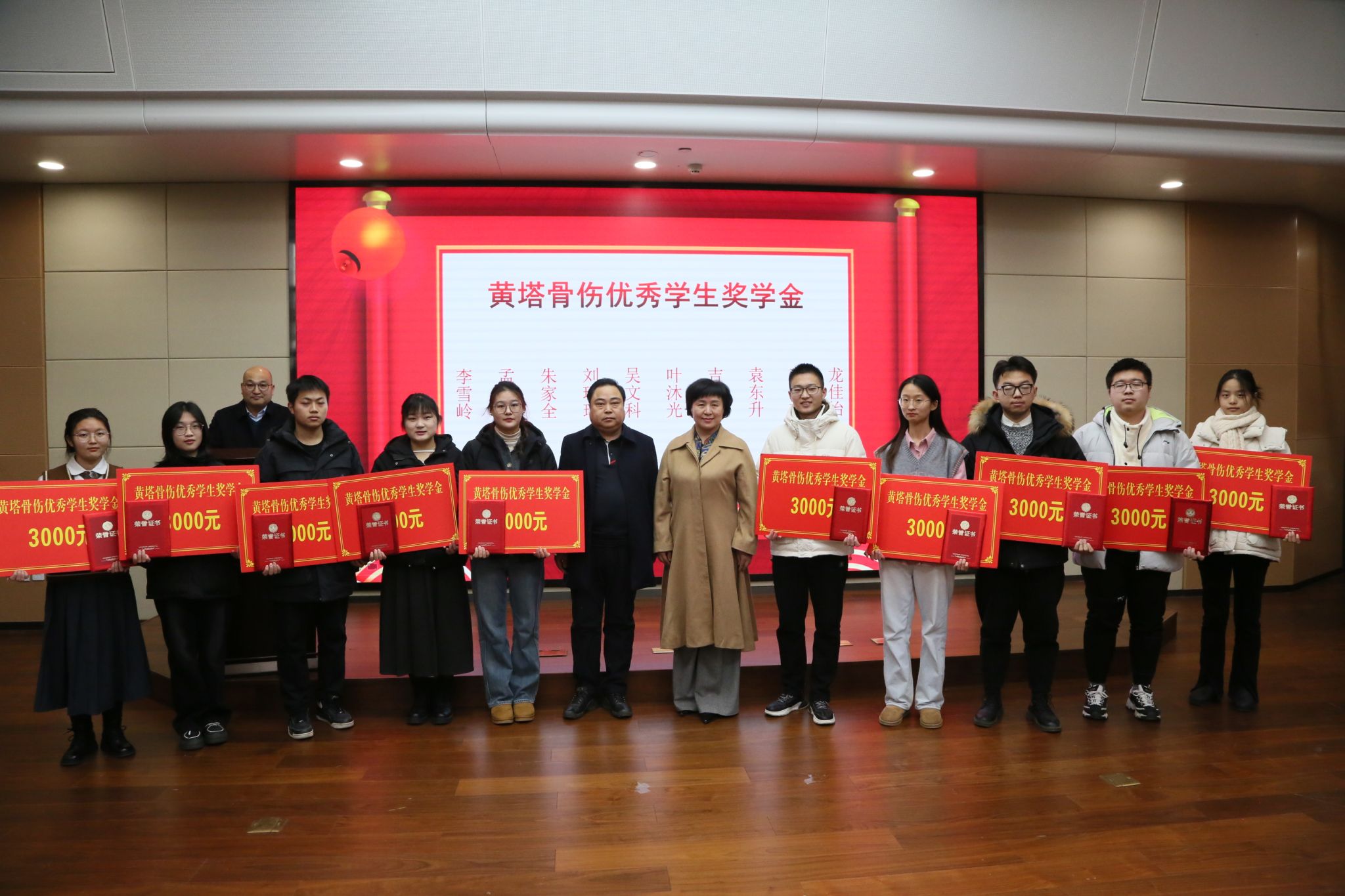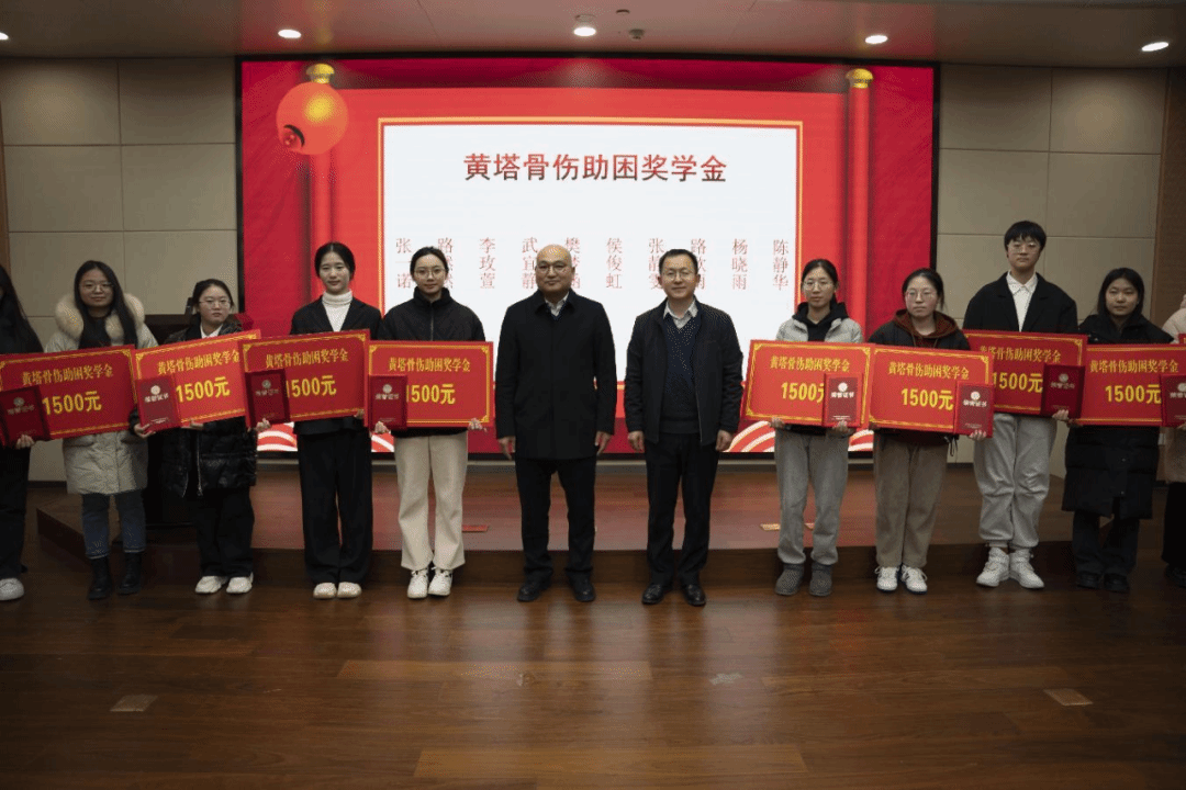 “黄塔骨伤奖学金”设置三类奖项,共有25名学生获奖。参会领导依次对荣获黄塔骨伤助困奖学金的10名学生、创新奖学金的5名学生、优秀学生奖学金10名学生进行了颁奖并合影留念。获奖学生代表吉嘉璐同学在发言中向同学们分享了学习经验,表达了对学校和黄塔骨伤医院的感谢,表示自己将再接再厉,取得更大进步,不辜负学校及社会的深深厚望。