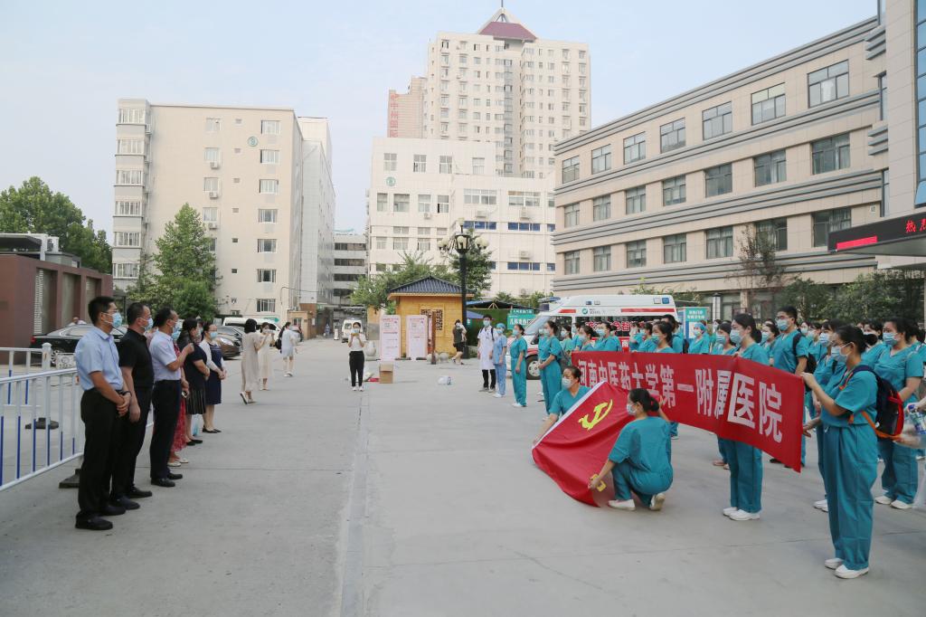 本网讯(文/郑金铎 图/冯超)晨曦初照,党旗辉映。2021年8月9日上午7点,leyu·乐鱼(中国)体育官方网站一附院第14批核酸采样医疗队集结出发,奔赴惠济区各采集点执行郑州市第三轮核酸检测任务。