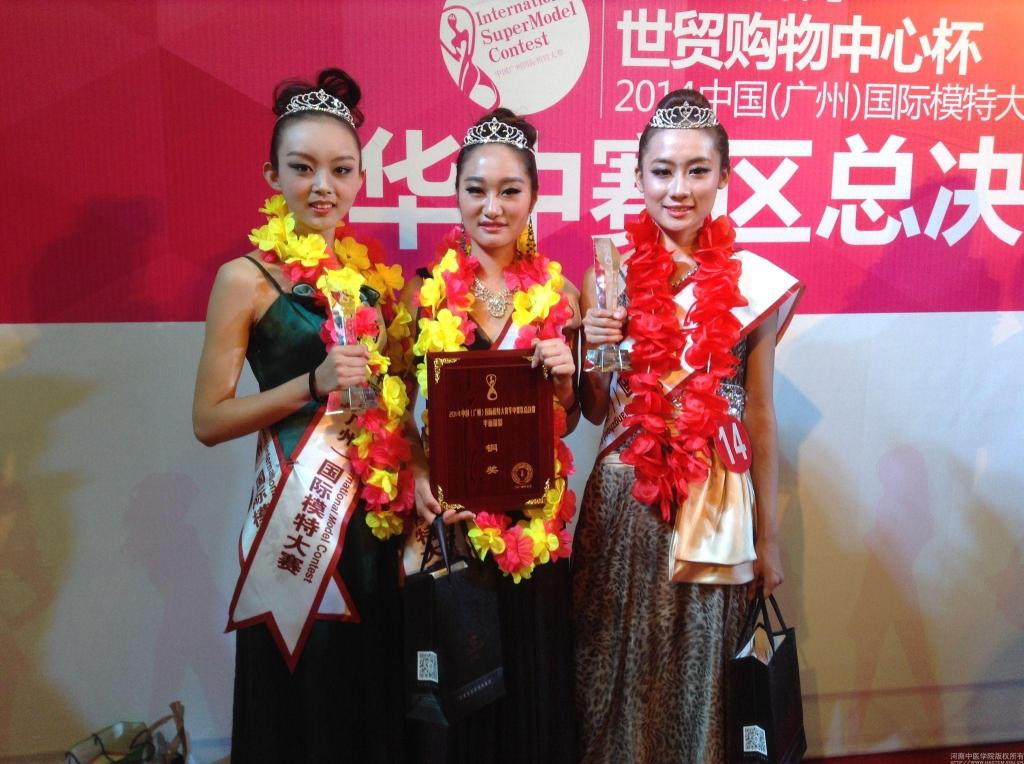在中国(广州)国际模特大赛华中赛区比赛中,外语学院2011级医学英语一班的闻浩言获得亚军、外语学院2013级汉语国际教育班王丽菲获得季军、外语学院2012级护理英语班刘燕君荣获得平面摄影组铜奖,其他四名学生也获得了最佳模特奖、个人单项奖等奖项。(摄影、撰稿:庞文奇)