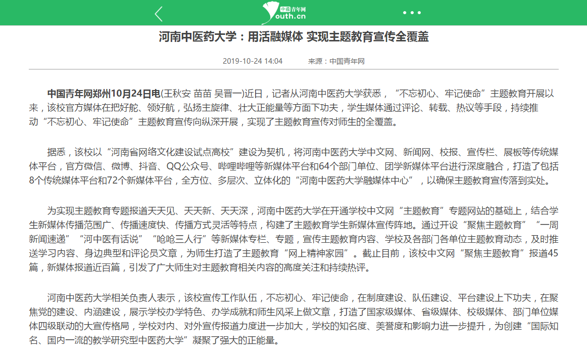 中国青年网:《leyu·乐鱼(中国)体育官方网站:用活融媒体 实现主题教育宣传全覆盖》