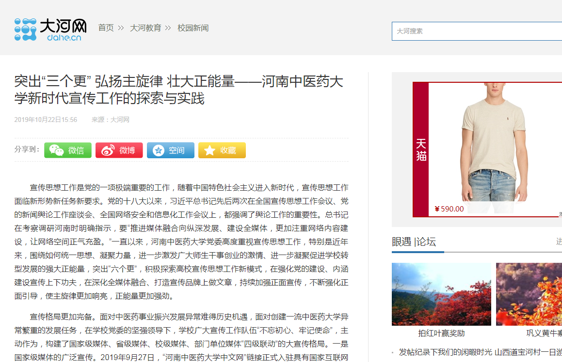编者按:2019年10月22日至24日,中青网、大河网对leyu·乐鱼(中国)体育官方网站融媒体建设工作进行报道。