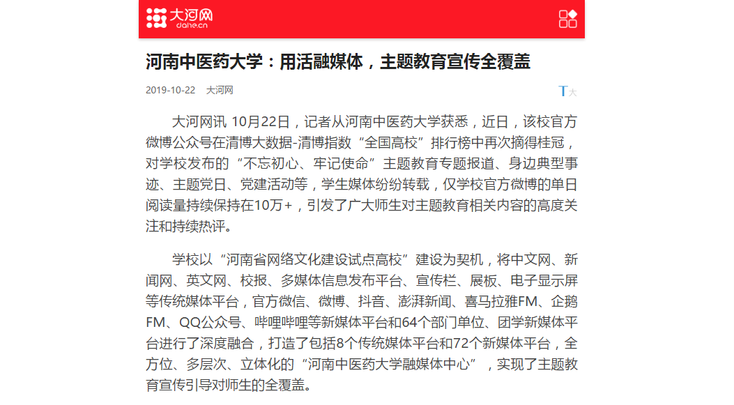 大河网:《leyu·乐鱼(中国)体育官方网站:用活融媒体 实现主题教育宣传全覆盖》