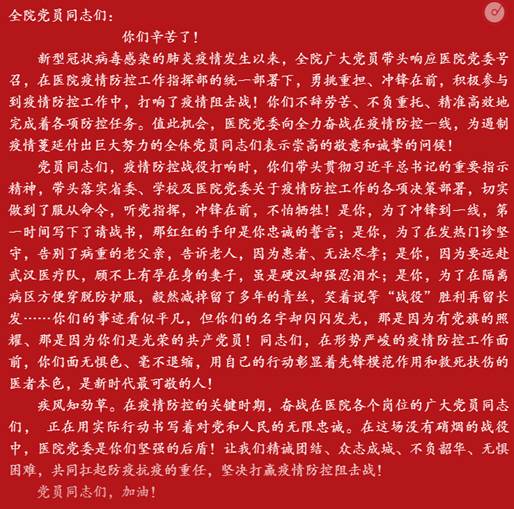 【鼓励鼓劲】医院党委写给党员职工的致敬信