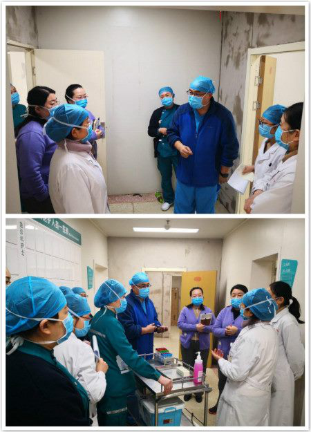 根据医院疫情防控工作部署,脾胃肝胆病区支部,张传雷和申亚南两位党员同志,确定前往感染病区参与确诊病例的救治工作,两位同志在接到通知后立即启程,前往隔离病区为收治的第一例确诊患者开展治疗及护理工作。同时,脾胃肝胆科王晓同志也被列为我院抗击疫情预备队成员,为抗击疫情的战斗时刻准备着,支部党员深受鼓舞,相互加油鼓劲,纷纷摩拳擦掌,并立下誓言:顶风逆行雄心在,不破楼兰终不还!
