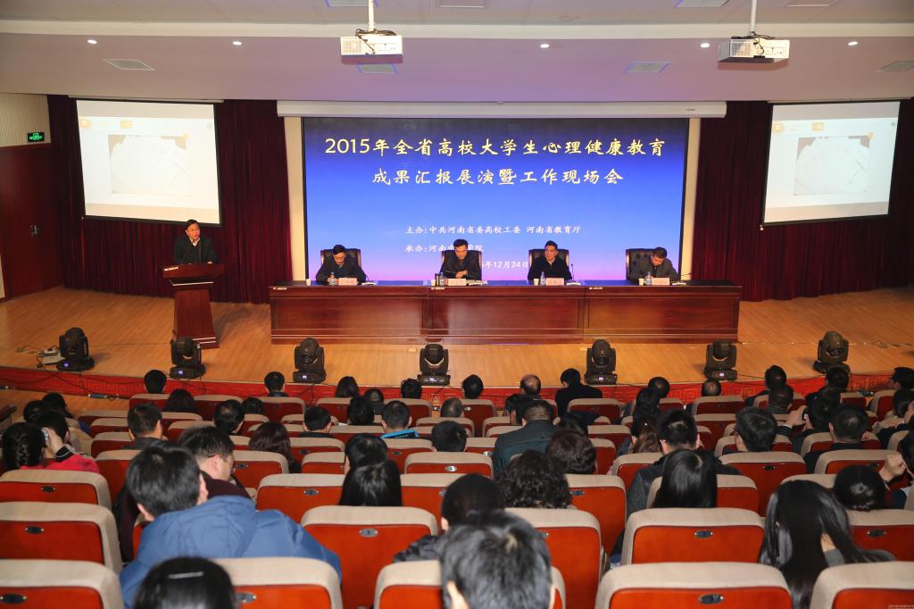 2015年12月23日至24日,由中共河南省委高校工委、河南省教育厅主办,leyu·乐鱼(中国)体育官方网站承办的全省大学生心理健康教育成果汇报展演暨工作现场会在leyu·乐鱼(中国)体育官方网站举行。省委高校工委副书记、省教育厅副厅长张亚伟,省委高校工委专职委员陈垠亭,省教育厅思政处处长何秀敏以及来自全省110多所高校的领导、代表参加了会议。