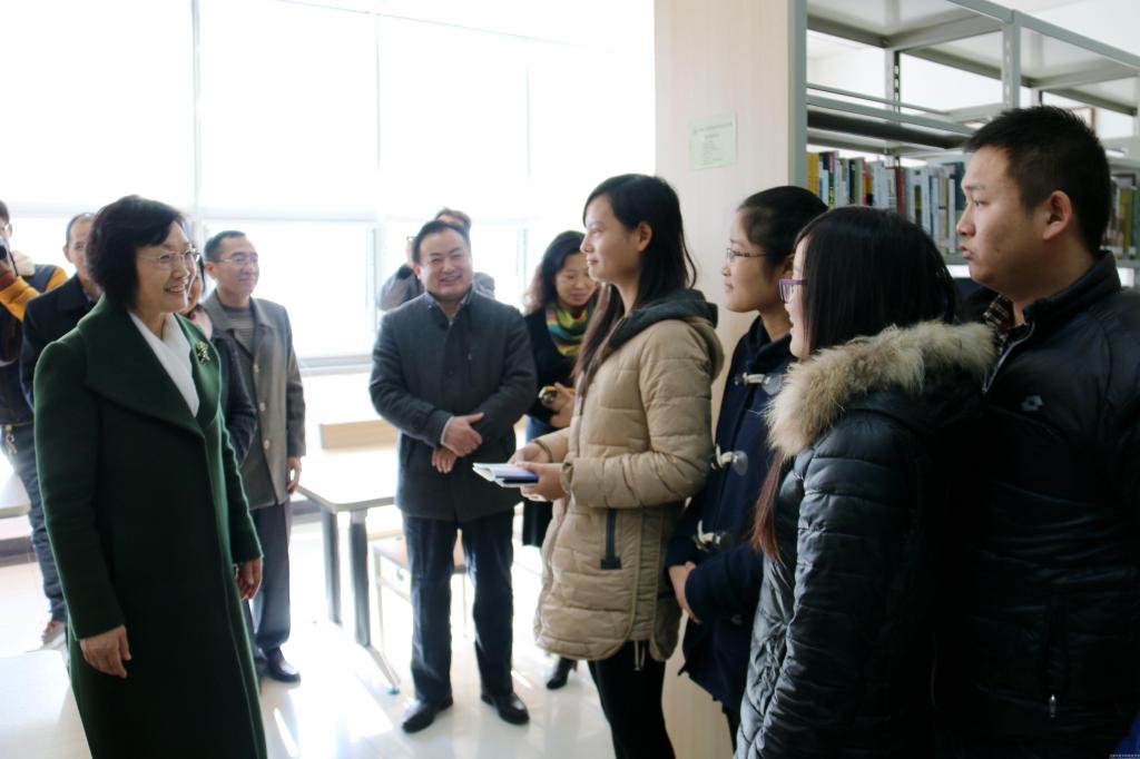 郑院长在讲话中高度评价了人文学院图书分馆建设情况。她指出,图书馆是决定一所大学层次的重要因素,学校历来重视图书馆和分馆的建设,继外语学院、信息技术学院、思政部建设图书分馆之后,人文学院成为第四个建设分馆的院系。人文学院图书分馆的选址优越、布局合理、装饰雅致,可以作为leyu·乐鱼(中国)体育官方网站图书分馆建设的范本,今后要重点加强内涵建设。郑院长还提出了总馆与分馆在统一管理、统一编目、开放服务等方面的希望和要求。随后,郑院长和人文学院院长张丽青共同为分馆揭牌,人文学院图书分馆正式开馆。
