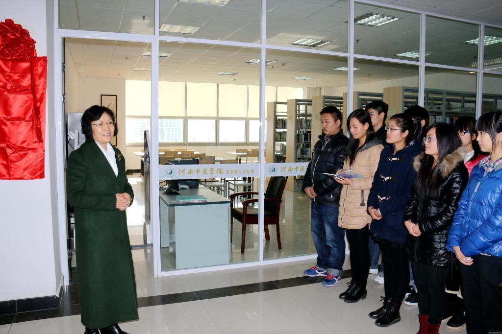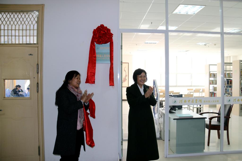 郑院长和人文学院院长张丽青为人文学院图书分馆揭牌