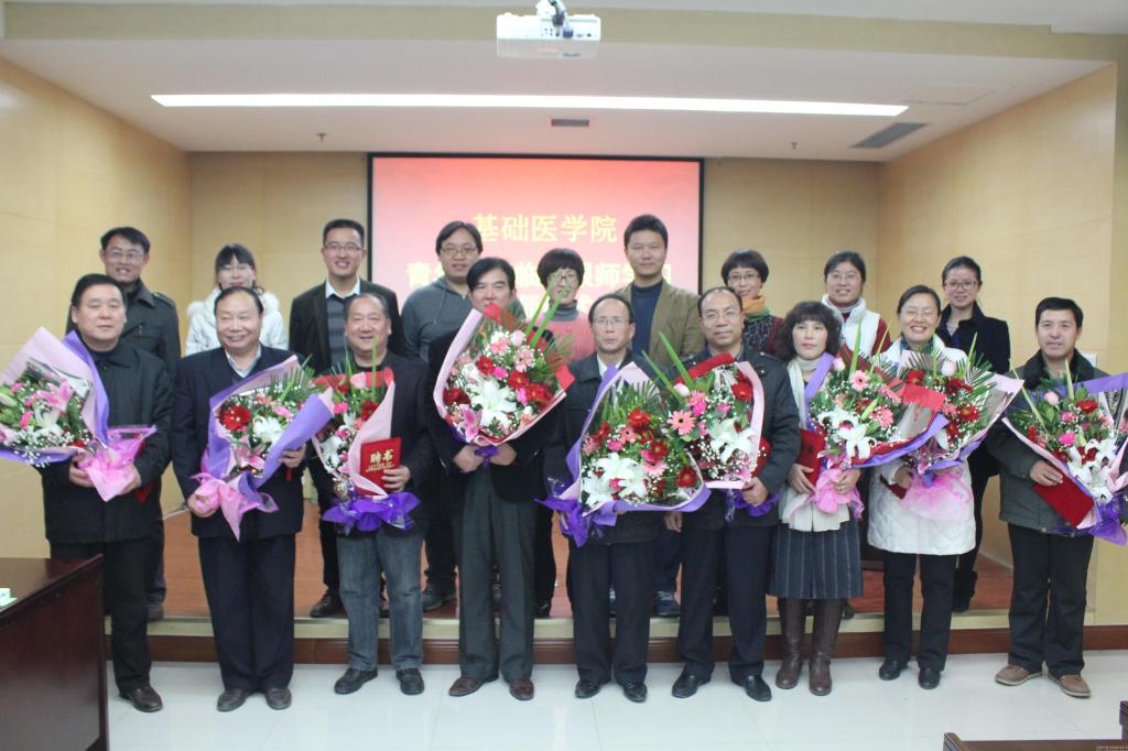 2013年11月29日下午3点,基础医学院举行了首届青年教师临床跟师学习拜师仪式。学校郑玉玲院长、李建生副院长、教务处、师资发展中心负责人、基础医学院党政班子、指导教师及青年教师代表等30余人参加了此次活动。仪式由基础医学院副院长曹珊主持。