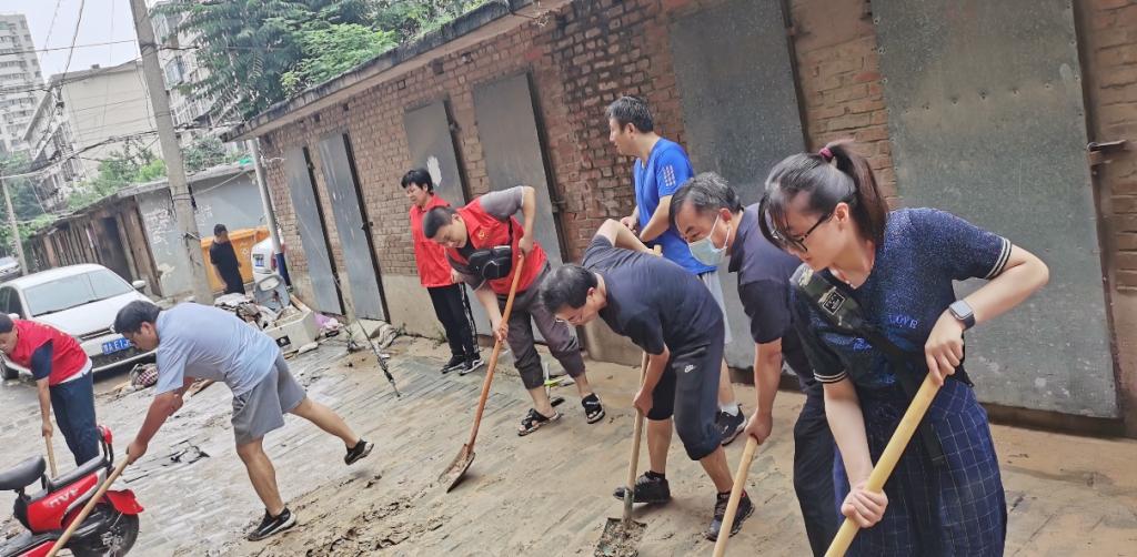 校园就是师生的家,给自己的家打扫卫生,大家无怨无悔。参加志愿活动的不仅有已退休多年的老教师,还有刚刚报到一周的新进博士,大家不怕脏、不怕累,齐心协力、认真细致地清理内涝后的校区。得知老师们志愿来东明路校区清污后,学院2018级预防医学专业实习生同学们在自己饮用水仍然短缺的情况下,自发捐献出自己不多的饮用水送到老师手中,谱写了一段动人的师生情。