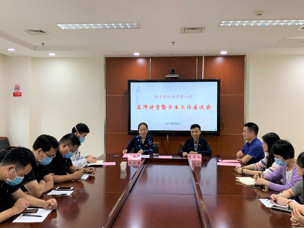 本网讯(文/陈占科 图/李新宇)崭新的学年,孕育着希望和憧憬,时值第三十七个教师节,为强化辅导员职业能力,做好思想引领,讲好汛情和疫情故事,教育引导广大青年学生对“能、行、好”的理论和情感认同,2021年9月7日上午在一附院新门诊楼1422会议室,第一临床医学院邀请“全国教学名师”赵文霞教授为全体辅导员上了一堂题为《辅导员如何从平凡中塑造伟大》的“开学第一课”,学院党委副书记张婉红、副院长王永霞、中西医结合内科教研室主任张海龙、学工办主任陈占科以及全体辅导员参与本次座谈,本次会议由王永霞主持。