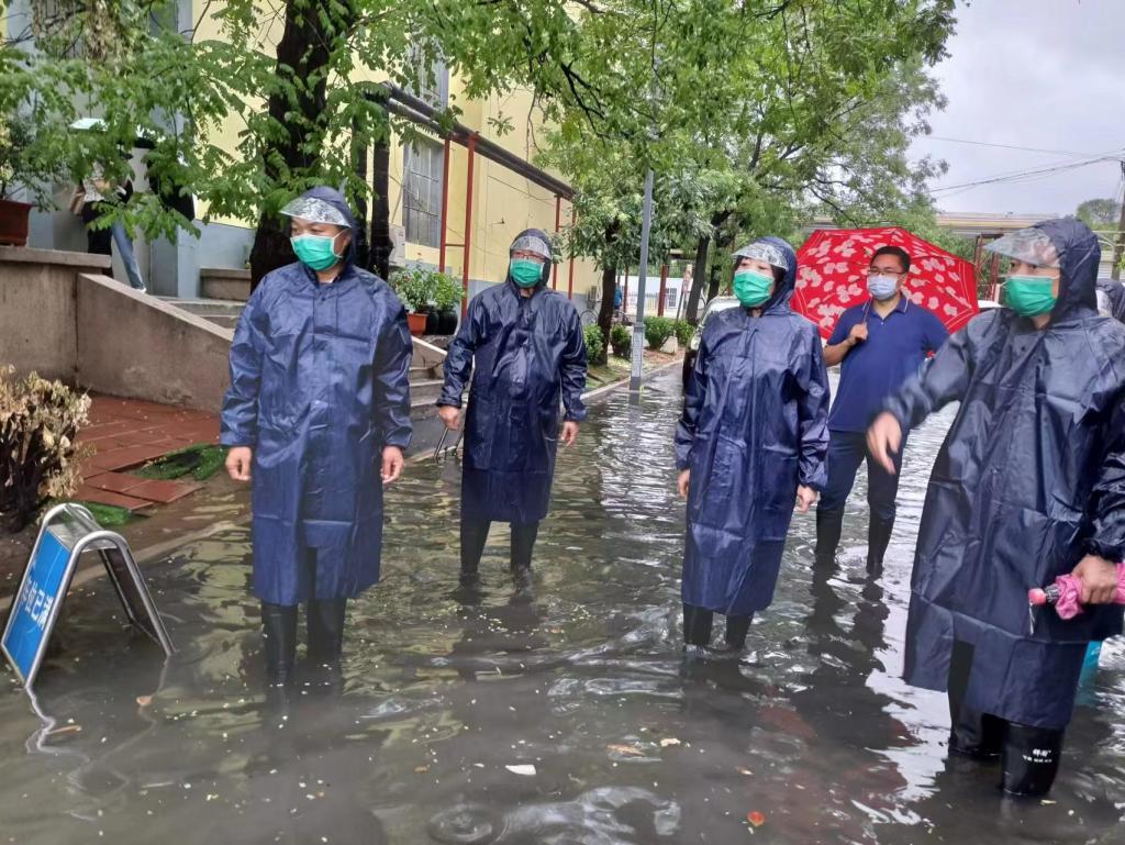 下午5点,狂风暴雨,短时间路面雨水覆盖。院党委副书记焦钧、副院长张进一带领防汛抢险应急人员和值班同志冒雨深入院区查看积水情况,现场指导排水工作,并对未来几小时内可能产生的汛情科学预判,叮嘱各岗位人员一定要提高警惕,坚守岗位,及时做好应急处置,确保排水通畅、供水供电正常。并要求积水排尽后,防汛应急人员要对院区进行清扫。