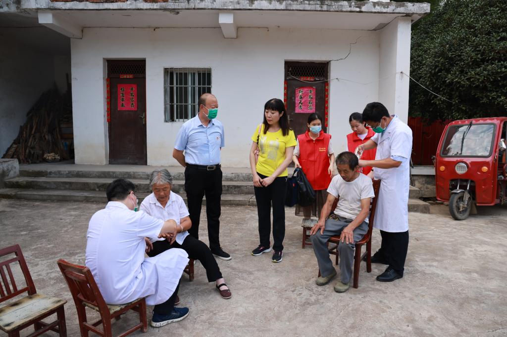 张政、焦钧一行在胡斌和皮冲村党支部书记陈金括陪同下,深入到身患疾病的农户家中,送去慰问金,叮嘱病人健康生活,早日痊愈。随行医疗队员胡兴旺、李志刚为患病群众现场进行了中药、针灸、推拿、拔罐等治疗。