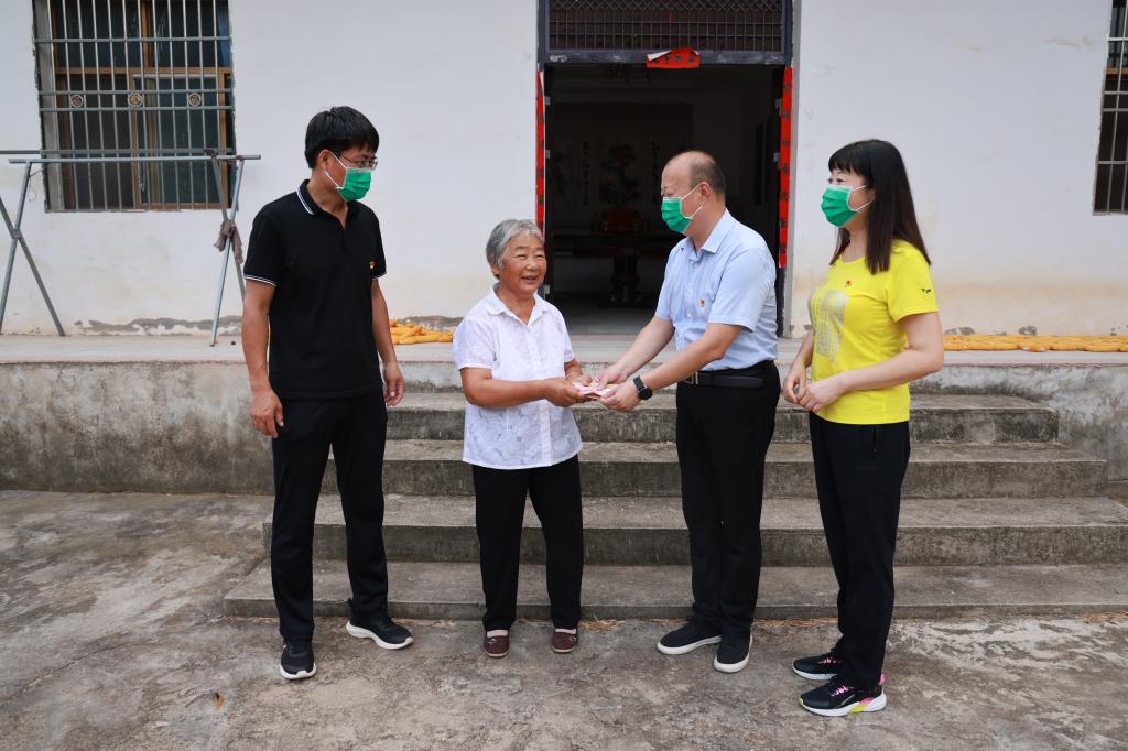 本网讯(文图/胡兴旺 潘向昆) 为贯彻习近平总书记关于乡村振兴的重要指示批示精神,落实校党委关于推进脱贫攻坚与乡村振兴有效衔接部署安排,扎实推进“能力作风建设年”活动,2022年8月16日至17日,三附院党委副书记张政、焦钧一行7人到三附院副院长胡斌派驻村——固始县皮冲村调研指导帮扶工作,慰问困难户和老党员代表。
