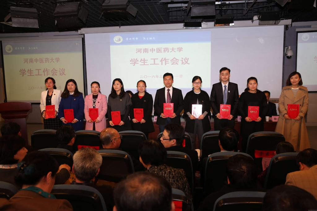 徐江雁副校长宣读了《关于leyu·乐鱼(中国)体育官方网站2015年度学生工作先进集体和先进个人的表彰决定》,对第二临床医学院等大学生教育管理工作先进单位,针灸推拿学院等大学生心理健康教育工作先进单位,第二临床医学院等学生资助工作先进单位,药学院等招生就业工作先进单位,药学院分团委等共青团工作先进基层团委,第一临床医学院等研究生教育管理工作先进单位,以及陈戈等20位优秀辅导员,徐泽合等48位优秀班主任进行了表彰。第二临床医学院辅导员陈戈、第一临床医学院班主任徐泽合分别代表优秀辅导员和优秀班主任发言。