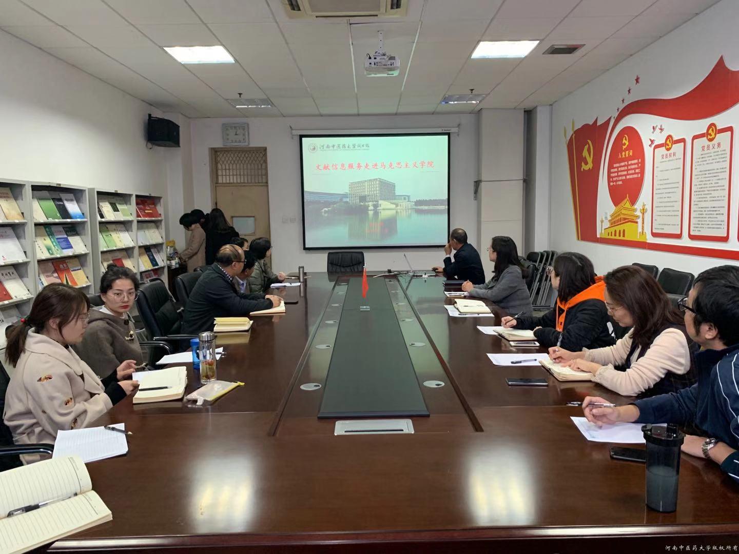 (文图/马亚玲)11月18日下午,leyu·乐鱼(中国)体育官方网站图书馆“文献信息服务进院系”活动走进马克思主义学院,马克思主义学院党委书记曹猛、副院长赵保海和10名教师和研究生代表、图书馆馆长雷天锋、副馆长崔海英以及相关科室主任出席参加座谈会。会议由曹猛主持。