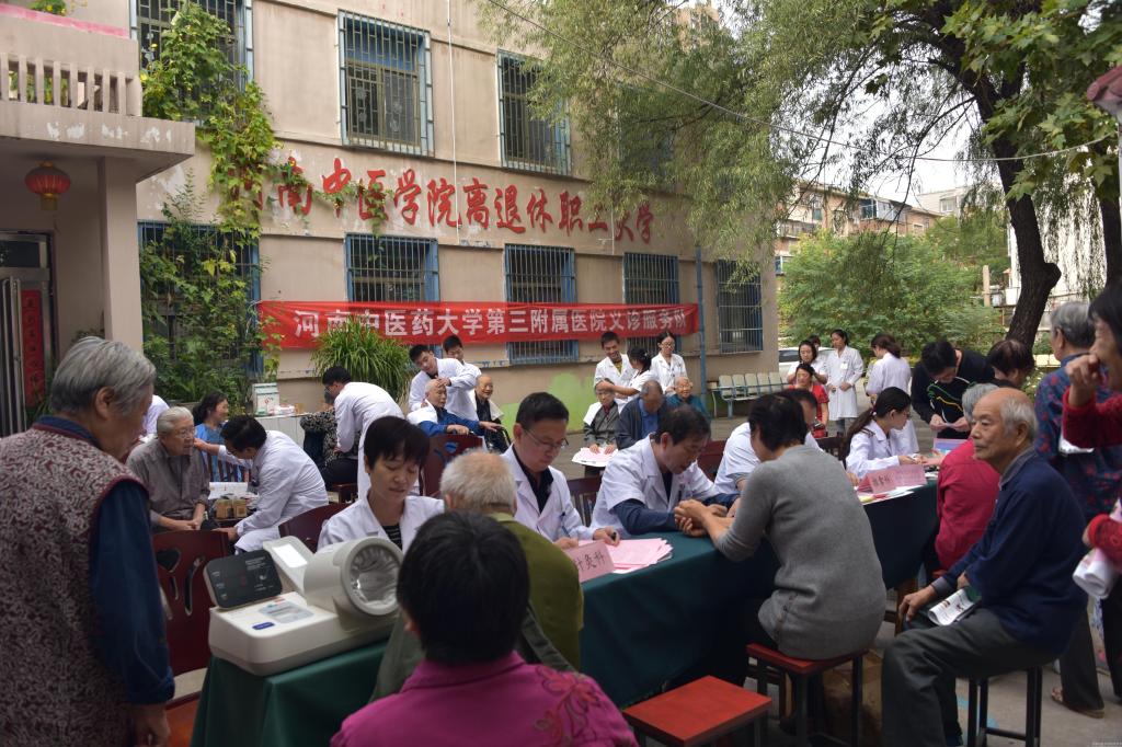 金秋送爽,丹桂飘香。为弘扬中华民族尊老爱老的传统美德,让离退休老干部、老教师度过一个温馨愉快的重阳节,2016年10月8日下午,三附院党委副书记郭书敏带领心血管科、针灸科、推拿科、医务部、春生元大药房医务人员组成的医疗服务队,来到东明校区老干部活动中心,开展“九九重阳”送医送药慰问活动,为广大离退休老干部们送温暖、送祝福、送健康。