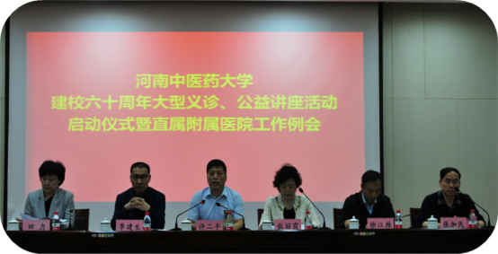 2018年5月21日下午,leyu·乐鱼(中国)体育官方网站在第二报告厅召开了“建校六十周年大型义诊及公益讲座系列活动”启动仪式暨直属附属医院第二季度工作例会。校党委书记别荣海,校长许二平,党委副书记张丽霞,副校长李建生、徐江雁、田力,工会主席张加民,有关部门、单位负责人,4所直属附属医院领导班子成员,6所非直属附属医院负责人,兰考、睢县、林州、固始等县中医院负责人等参加会议。会议由副校长李建生主持。