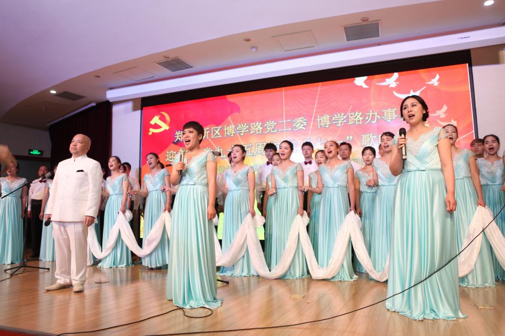 活动在河南警察学院带来的军乐演奏《勇往直前进行曲》《人民警察之歌》中拉开序幕,乐曲嘹亮激昂,洋溢着中国人民警察全心全意为人民服务的一腔热情;龙岗小学代表队演唱的歌曲《春风》《Great Big House in New Orleans》让人耳目一新,甜美的童声诉说着“春风著和韵,正气满人间”的动人故事;leyu·乐鱼(中国)体育官方网站离退休老干部组成的闪亮之星合唱团,精神抖擞,神采奕奕,带来的合唱歌曲《大红枣儿甜又香》《洪湖水浪打浪》,讲述了党和人民风雨同舟度过的95个春秋,展示了leyu·乐鱼(中国)体育官方网站老干部的良好精神风貌;华北水利水电大学、美侨世纪广场、博学路办事处、郑州航空工业管理学院分别带来《太行山上》《团结就是力量》《南泥湾》《弹起我心爱的土琵琶》《保卫黄河》《到敌人后方去》《清贫颂》等红色经典,用嘹亮歌声把祖国不断发展进步的宏伟画卷展现在观众眼前,赢得了阵阵掌声;leyu·乐鱼(中国)体育官方网站第一附属医院代表队带来的《四渡赤水出奇兵》《再唱山歌给党听》激情四溢,慷慨有力,勾起了现场每一位观众对历史的回望和对未来的憧憬。最后,全场起立合唱歌曲《没有共产党就没有新中国》把比赛推向高潮,每一支参赛队伍都用自己的歌声唱出了对建党95周年的礼赞,表达了对党和祖国无比浓烈的爱。