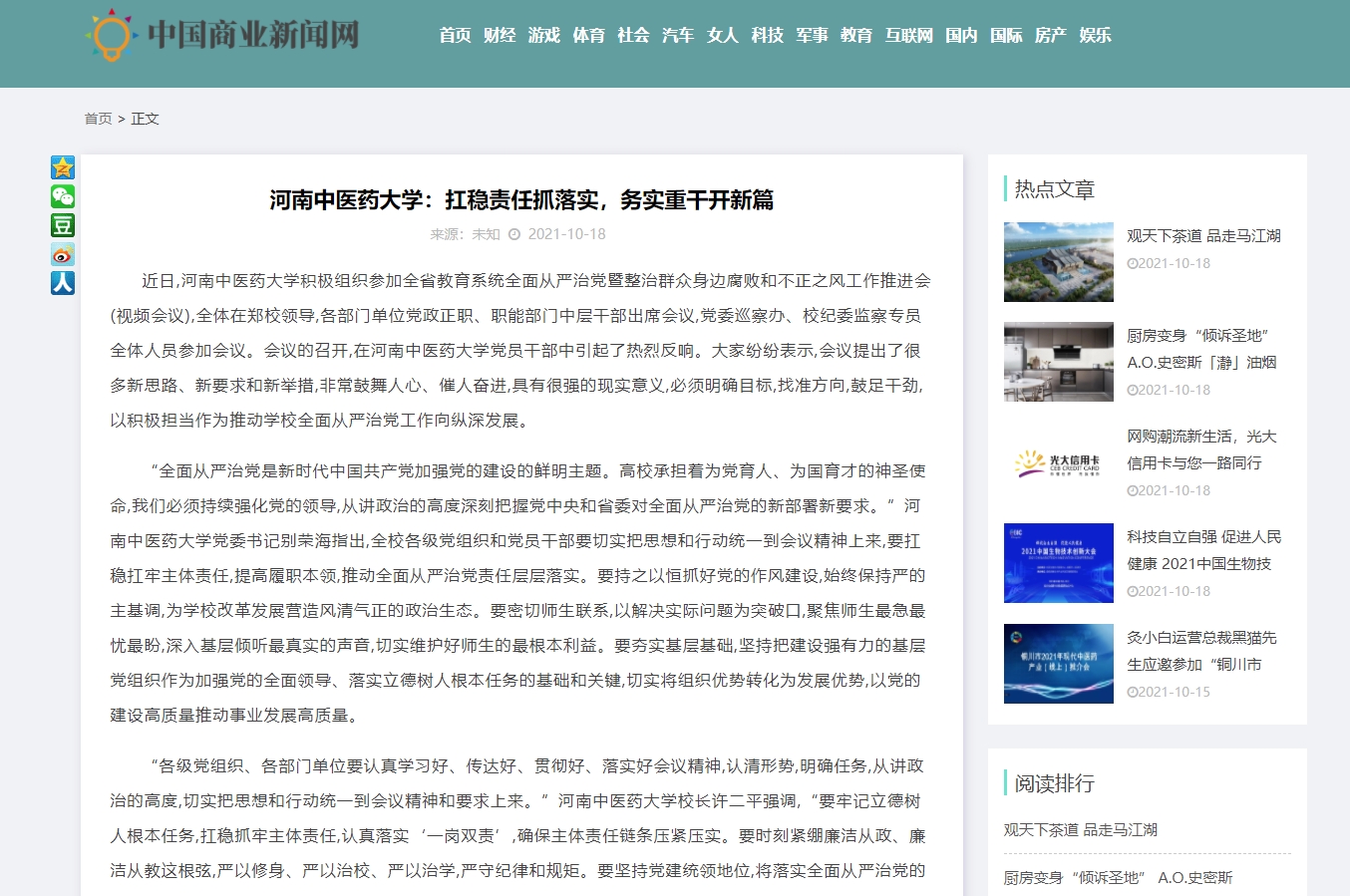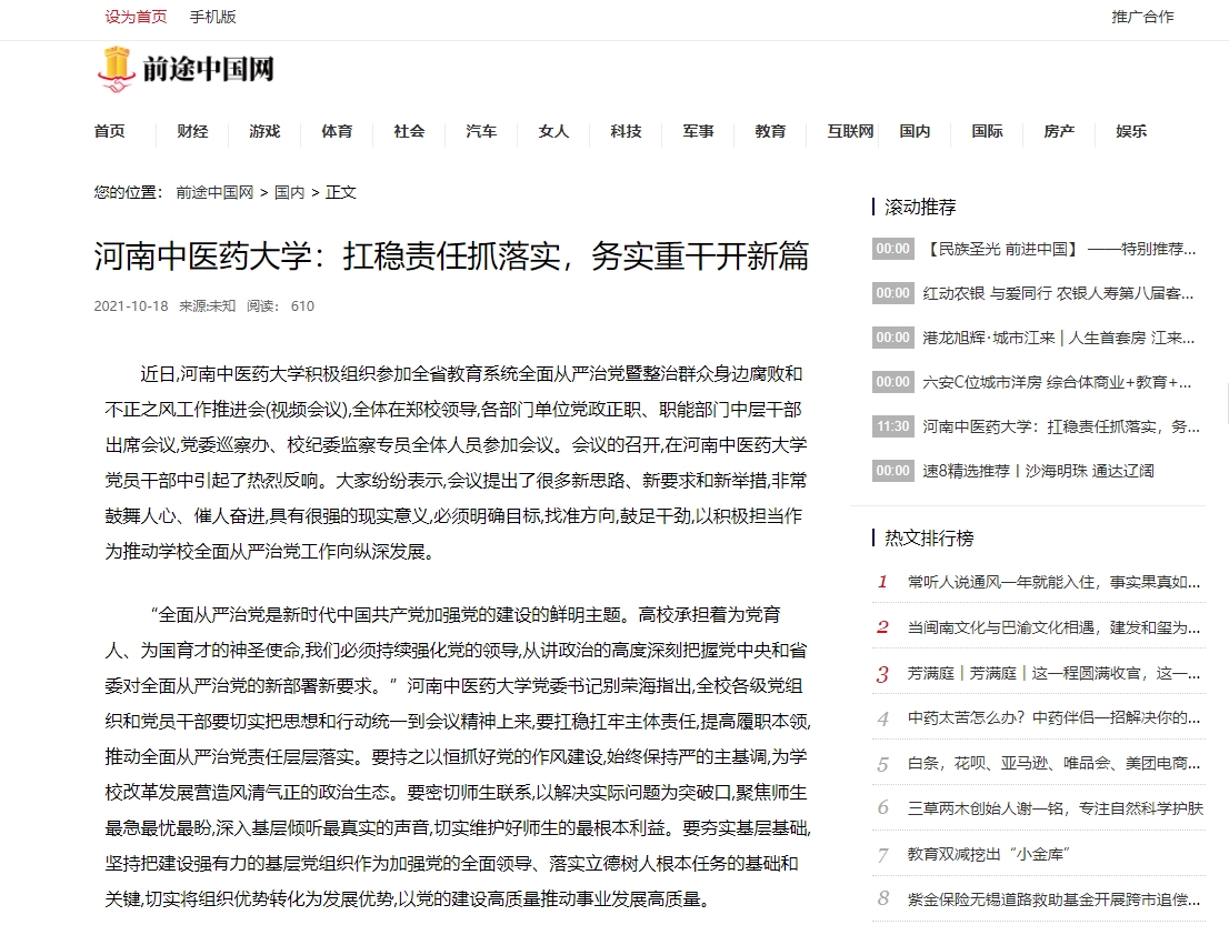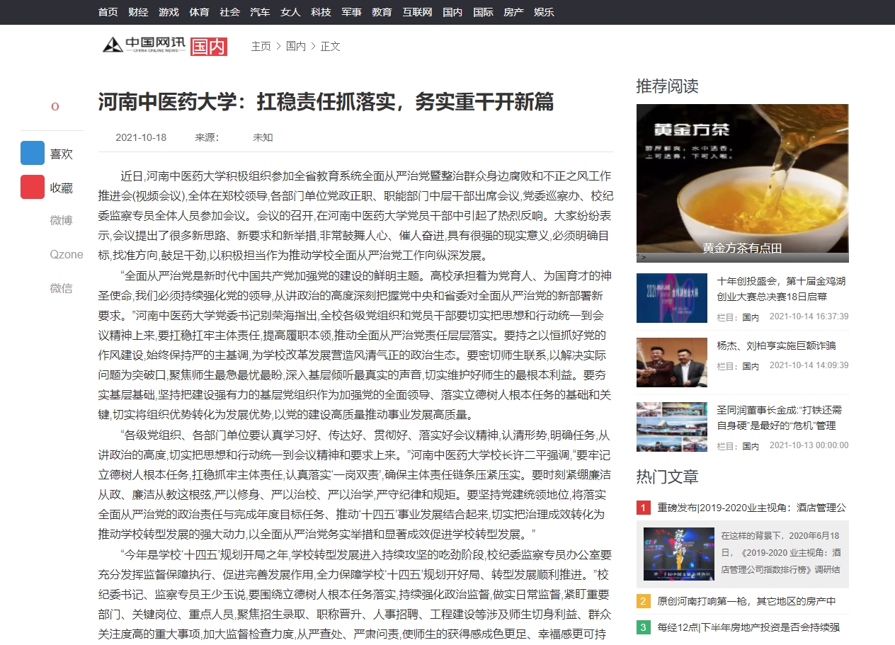 编者按:2021年10月18日,中国网讯、中国大观网、中国梦网、中国商业新闻网、前途中国网、中国创业在线、科技中国、经典中国、中国侨报网、中国前沿观察网等多家媒体对全省教育系统全面从严治党暨整治群众身边腐败和不正之风工作推进会在leyu·乐鱼(中国)体育官方网站党员干部中引起了热烈反响进行报道。