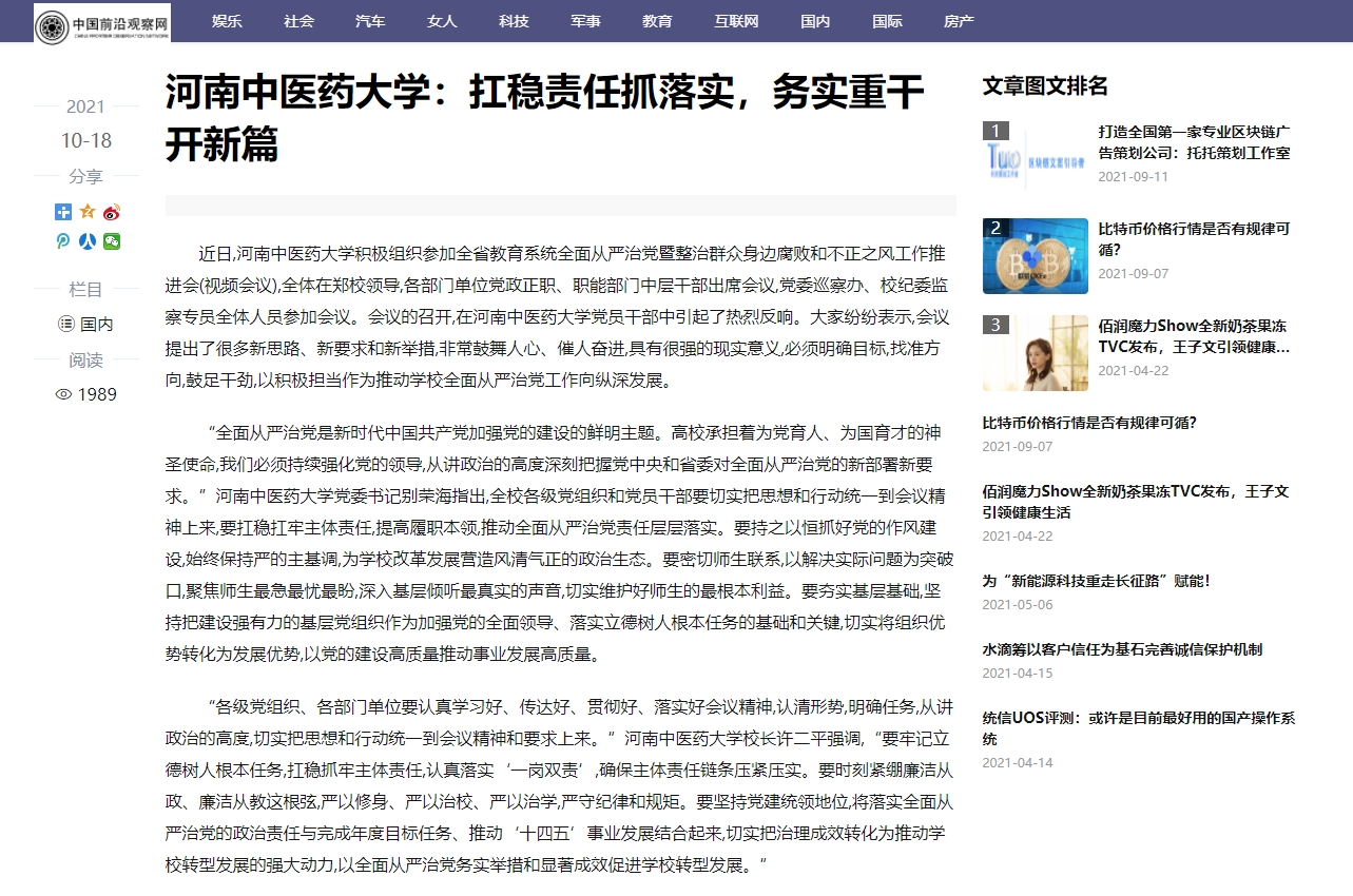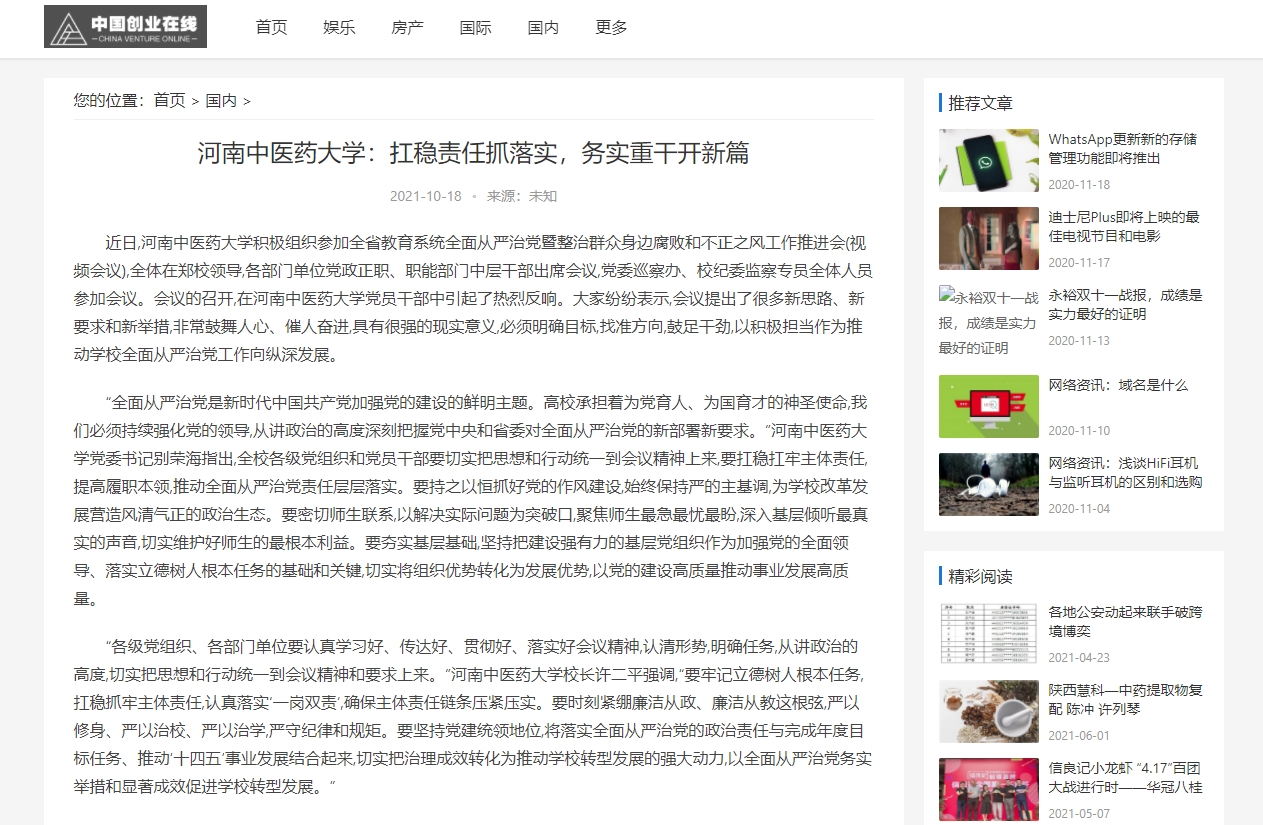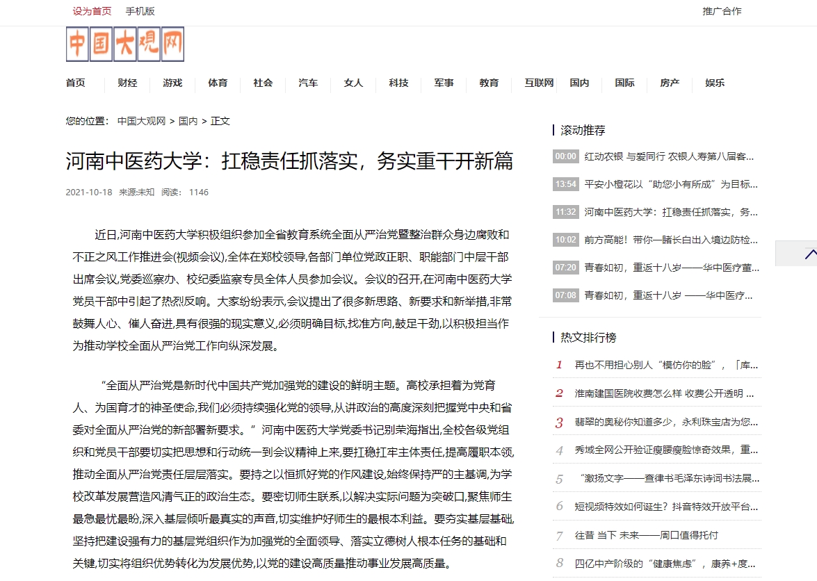编者按:2021年10月18日,中国网讯、中国大观网、中国梦网、中国商业新闻网、前途中国网、中国创业在线、科技中国、经典中国、中国侨报网、中国前沿观察网等多家媒体对全省教育系统全面从严治党暨整治群众身边腐败和不正之风工作推进会在leyu·乐鱼(中国)体育官方网站党员干部中引起了热烈反响进行报道。