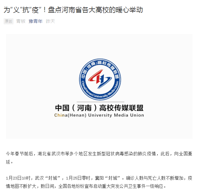 为“义”抗“疫”!盘点河南省各大高校的暖心举动