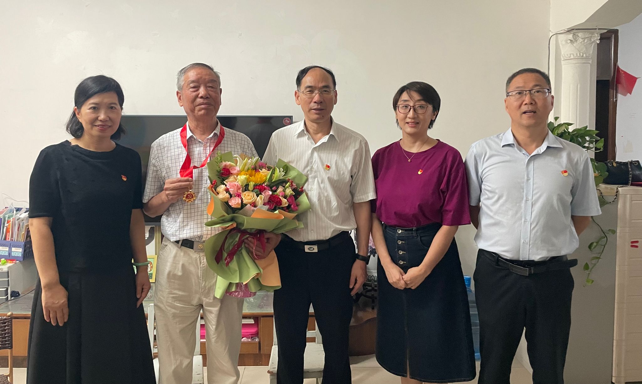 本网讯(文/刘欲晓 张筱伟 图/苗雨 沈秋红)五十载峥嵘岁月,五十载初心如磐。为庆祝中国共产党成立103周年,进一步弘扬伟大建党精神,传递组织关怀与温暖,2024年7月1日,校党委书记李小芳,党委副书记、工会主席张加民,党委副书记朱建光分别带队走访慰问“光荣在党50年”老党员,为他们颁发纪念章,向他们致以崇高的敬意和诚挚的问候。校党委组织部、离退休职工工作处等部门同志参加活动。