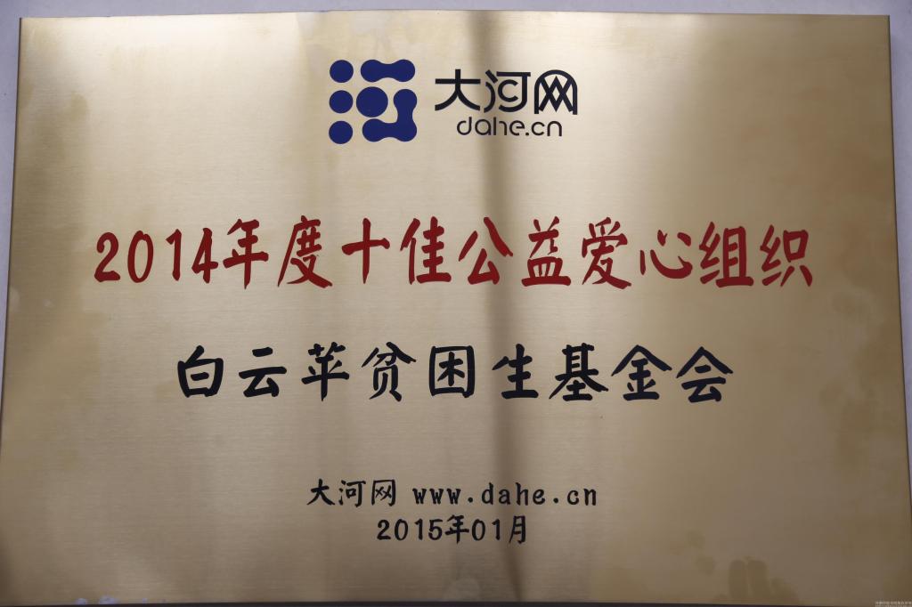 日前,白云苹贫困生基金会又喜获“首届全国大学生‘三下乡’支教课程设计竞赛优秀奖”和大河网2014年度十佳公益爱心组织两项殊荣。