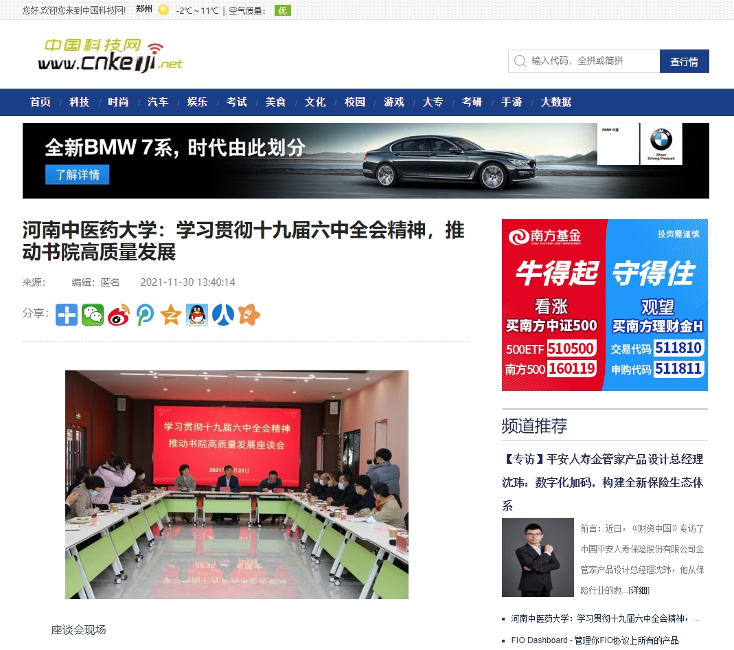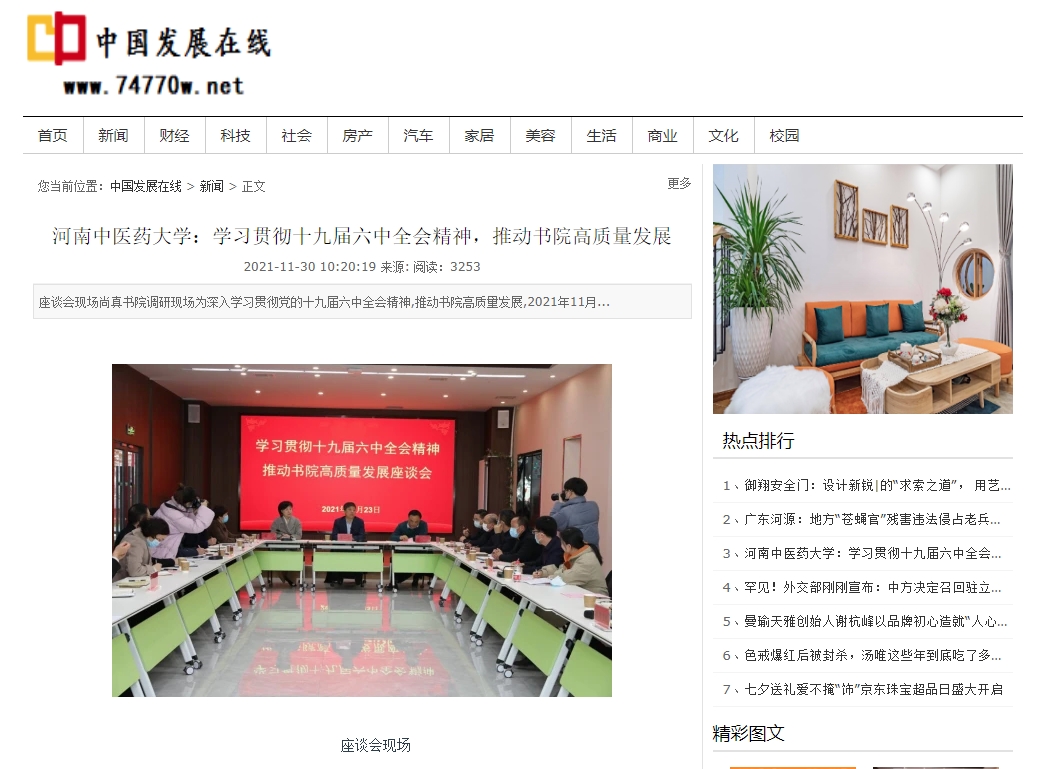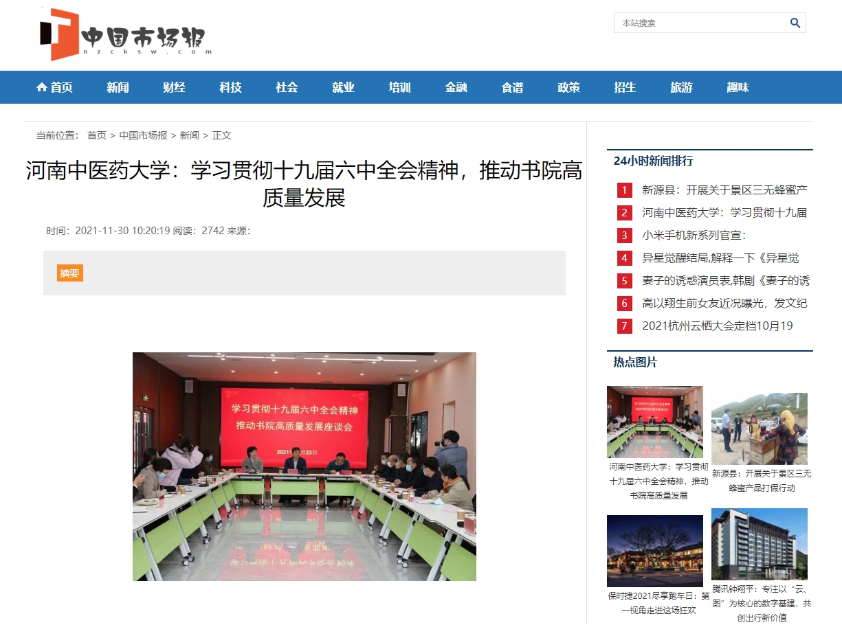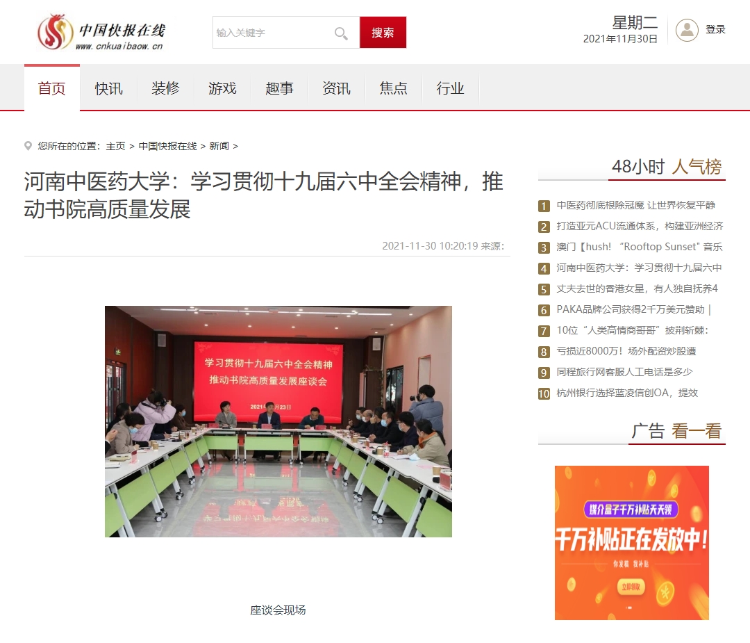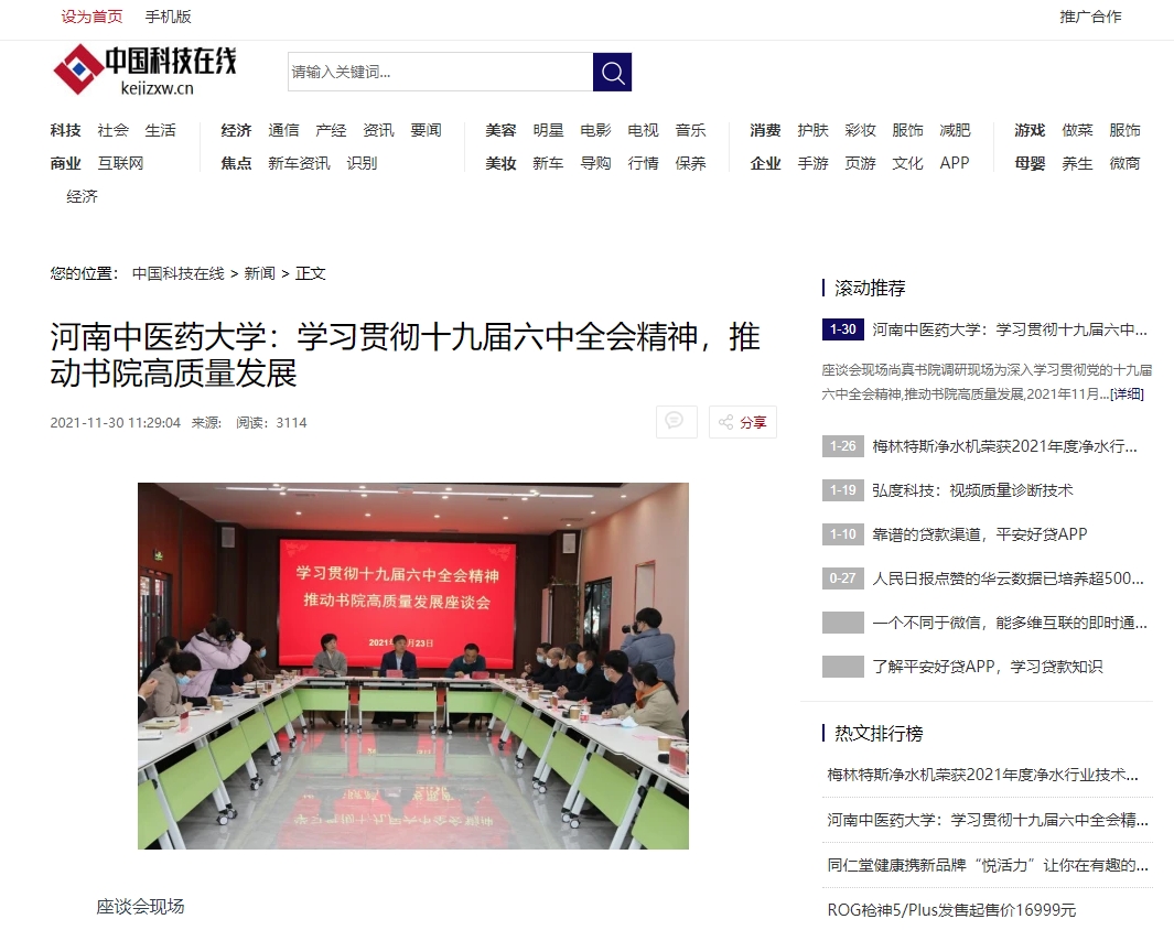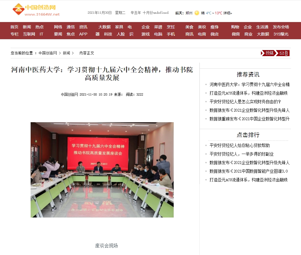 编者按:2021年11月30日,中国科技网、中国市场报、中国快报在线、中国创造网、资讯网中国、中国发展在线、中国科技在线、中国商业财经网、中国商业经济网、中国企业品牌网等多家媒体对leyu·乐鱼(中国)体育官方网站学习贯彻党的十九届六中全会精神,推动书院高质量发展进行报道。