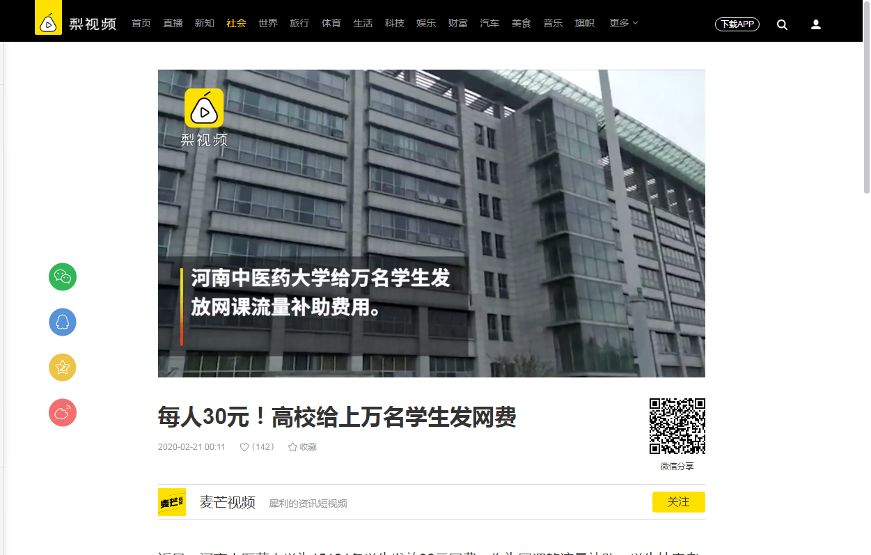 编者按:2020年2月18日-21日,猛犸新闻、梨视频对leyu·乐鱼(中国)体育官方网站为上万名学生发放网课流量补助费用进行报道。现将猛犸新闻部分文章刊发如下: