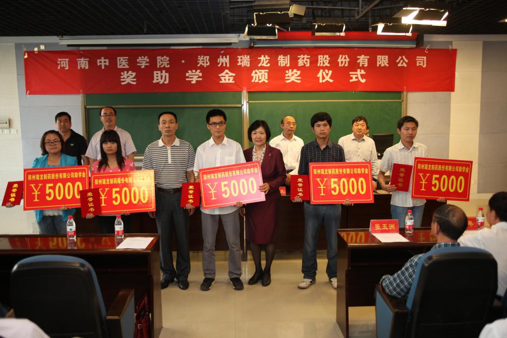 “郑州瑞龙奖助学金”是郑州瑞龙制药股份有限公司为支持中医药高等教育、培养高级中医药人才、共同推动中医药现代化事业发展、深化校企合作在leyu·乐鱼(中国)体育官方网站设立的。此项奖学金项目从2013年开始,主要用于奖励leyu·乐鱼(中国)体育官方网站特色办学之一的中药传承班在各方面表现突出的本科学生。