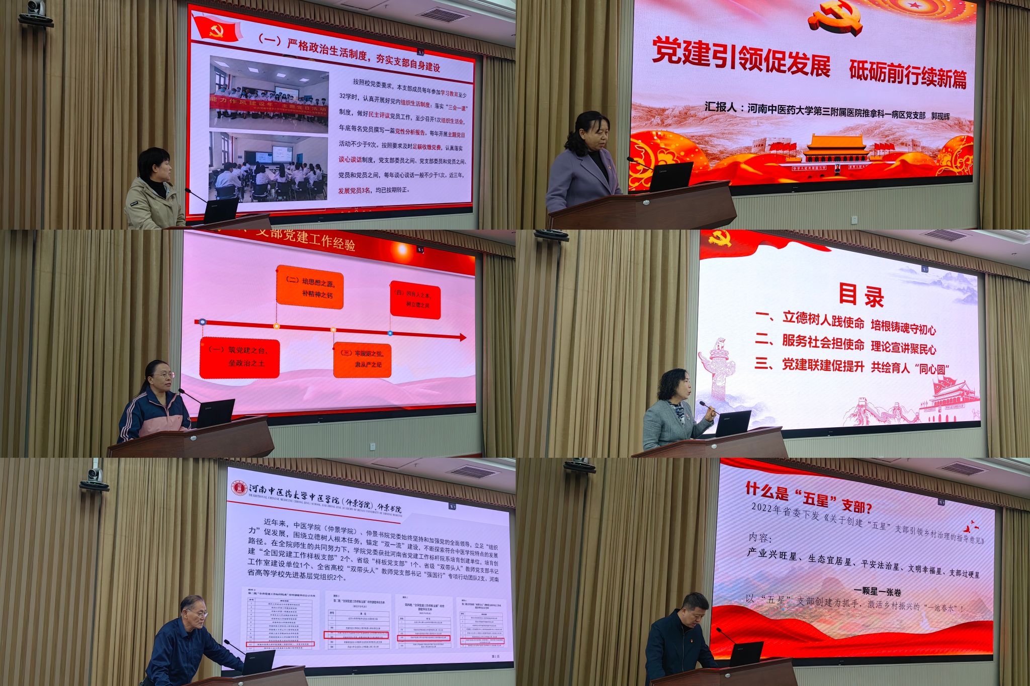 交流会上,党委组织部部长曹猛首先汇报了leyu·乐鱼(中国)体育官方网站近年来“全省党建工作示范高校”建设暨“三级联创”工作有关情况,并对基层党组织换届、科级干部培训、进一步加强基层党组织标准化规范化建设等工作进行安排。全省“五星”支部——学校定点帮扶村信阳市固始县武庙集镇皮冲村党支部书记王北溟,2个教育部高校“双带头人”教师党支部书记“强国行”专项行动团队——马克思主义学院马克思主义中国化研究党支部书记刘金鸽,第三附属医院、针灸推拿学院推拿科一病区党支部书记郭现辉,全国党建工作样板党支部——中医学院中医诊断与方剂学联合党支部书记车志英,全省党建工作标杆院系——中医学院(仲景学院)、仲景书院党委书记袁晓宇;全省党建工作样板支部——中医药科学院动物实验中心党支部书记孙瑞芹分别围绕“三级联创”工作的主要做法、特色亮点、成效不足和下一步工作思路进行了工作交流。