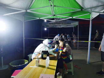 凌晨3:00,我们结束了一天的采样工作。虽然是凌晨,依旧有居民陆陆续续来采集核酸,虽然有一些难受,面屏已有些许模糊、精神状态下降,但我还是提醒自己坚持一下,直到结束才可以放松。
