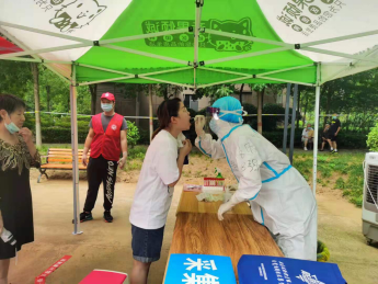 中午1:00左右,跟随着小组的人员来到了采样点,采样点已经排起了长长的队,我是第一轮上去采样的,按照规范穿戴好防护衣和口罩等,便正式开始了下午的工作。采样过程中,我遇到过嫌做的慢而抱怨的大伯,但在密不透风、说话都难听到的防护服里,我不能向他解释,就要赶忙接着下一组10人的采集。