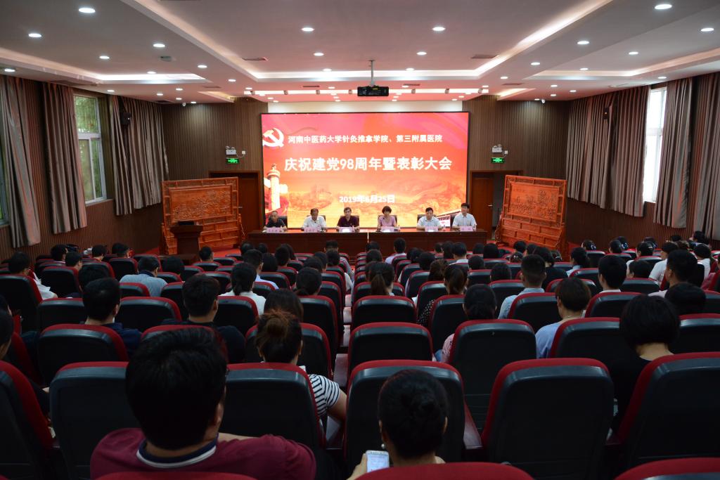 本网讯(文/胡兴旺 陈少辉 图/潘向昆)2019年6月25日下午,三附院在学术交流中心二楼召开庆祝建党98周年暨表彰大会。在郑的三附院党委委员、各党(总)支部、直属党支部书记和委员,党员代表,受表彰党员,新发展的党员以及入党积极分子代表参加了会议。党委副书记陶洁转达了在外进行学术交流的党委书记周运峰对受到表彰的先进集体、个人、新入党同志的祝贺以及对各位党员为医院的发展做出的突出贡献的感谢,并主持大会。