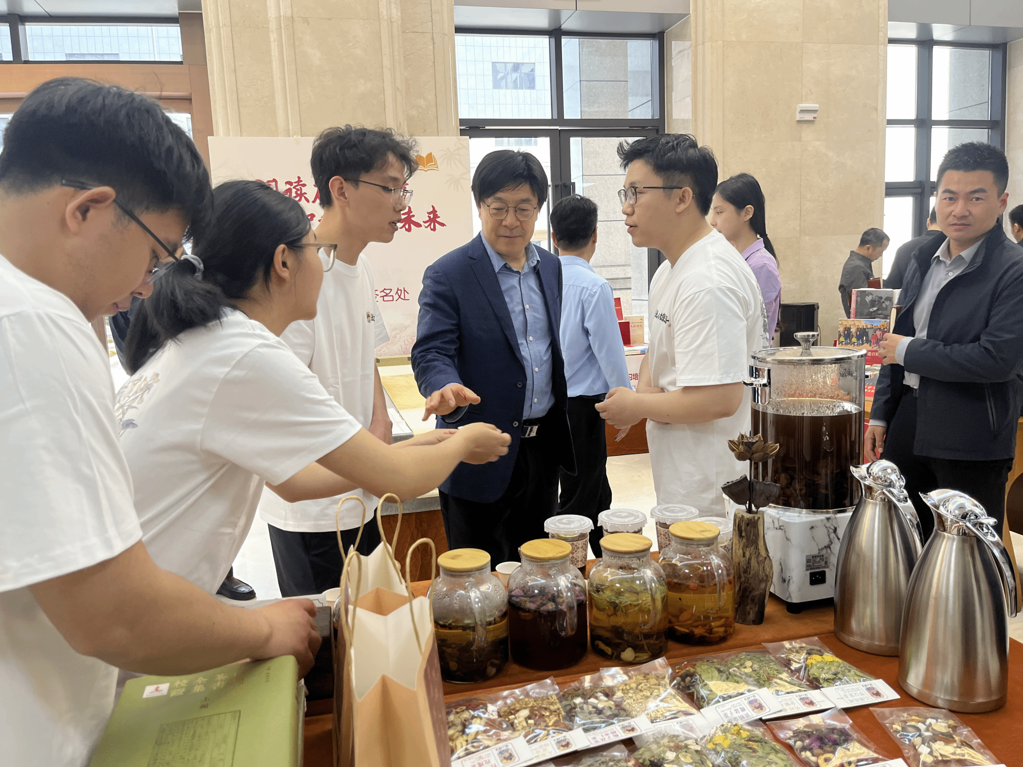 活动期间,团队成员现场讲解了新中式茶饮的配方和功效,分享了他们在研究过程中的有趣发现和心得体会,交流了对“药食同源”健康新理念的认识和理解,并对与会人员在健康、营养与养生方面的疑问进行了答疑解惑。省政协副主席、党组副书记谢玉安,省政协秘书长、党组成员、机关党组书记汪中山,副秘书长、办公厅主任吕岩,委员联络委员会主任郑邦山,办公厅一级巡视员刘长顺和部分机关青年干部职工参加活动。郑邦山鼓励大学生团队:“中医药是一种生活哲学,一种健康理念,你们的项目很有创意,也很有意义,希望你们能够继续深入研究中医药的精髓,不断探索新的思路和方法,继续发扬好中医药文化,讲好中医药故事,进一步激发公众对中医药的兴趣和热爱。”