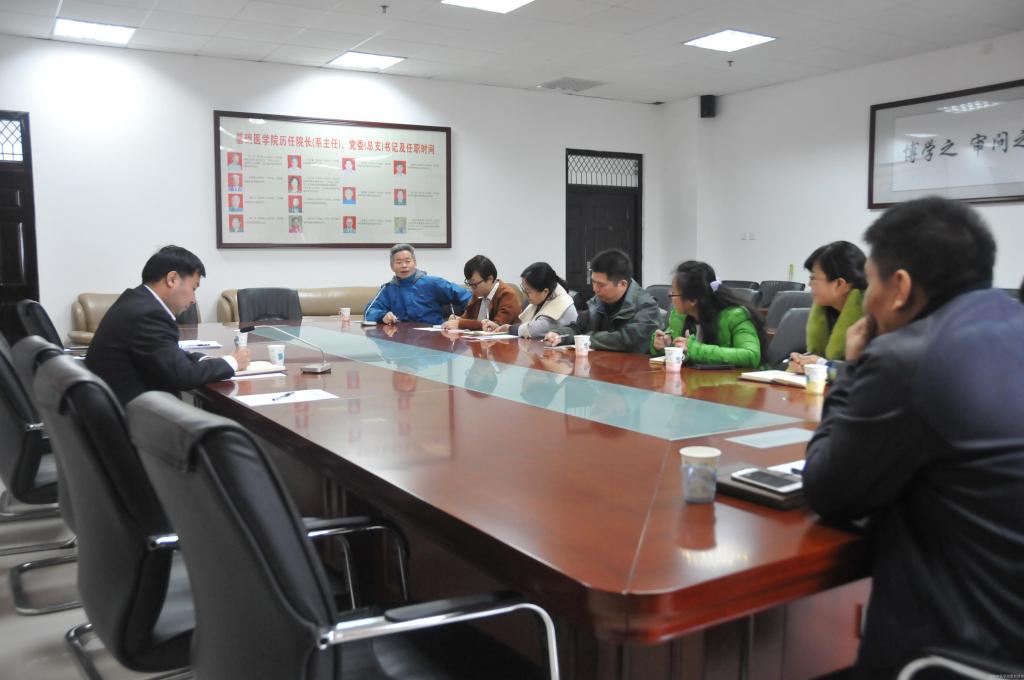 2015年11月10日,河南理工大学安全科学与工程学院党委副书记孙彦一行5人到leyu·乐鱼(中国)体育官方网站基础医学院交流考察学生工作。校学工部副部长、学生处副处长段其波、基础医学院党委书记马相奇及学工办全体老师与河南理工大学安全科学与工程学院学工队伍同仁交流座谈。双方就大学生思想政治教育、学生事务管理、资助工作、辅导员班主任队伍建设等进行了深入交流和研讨。